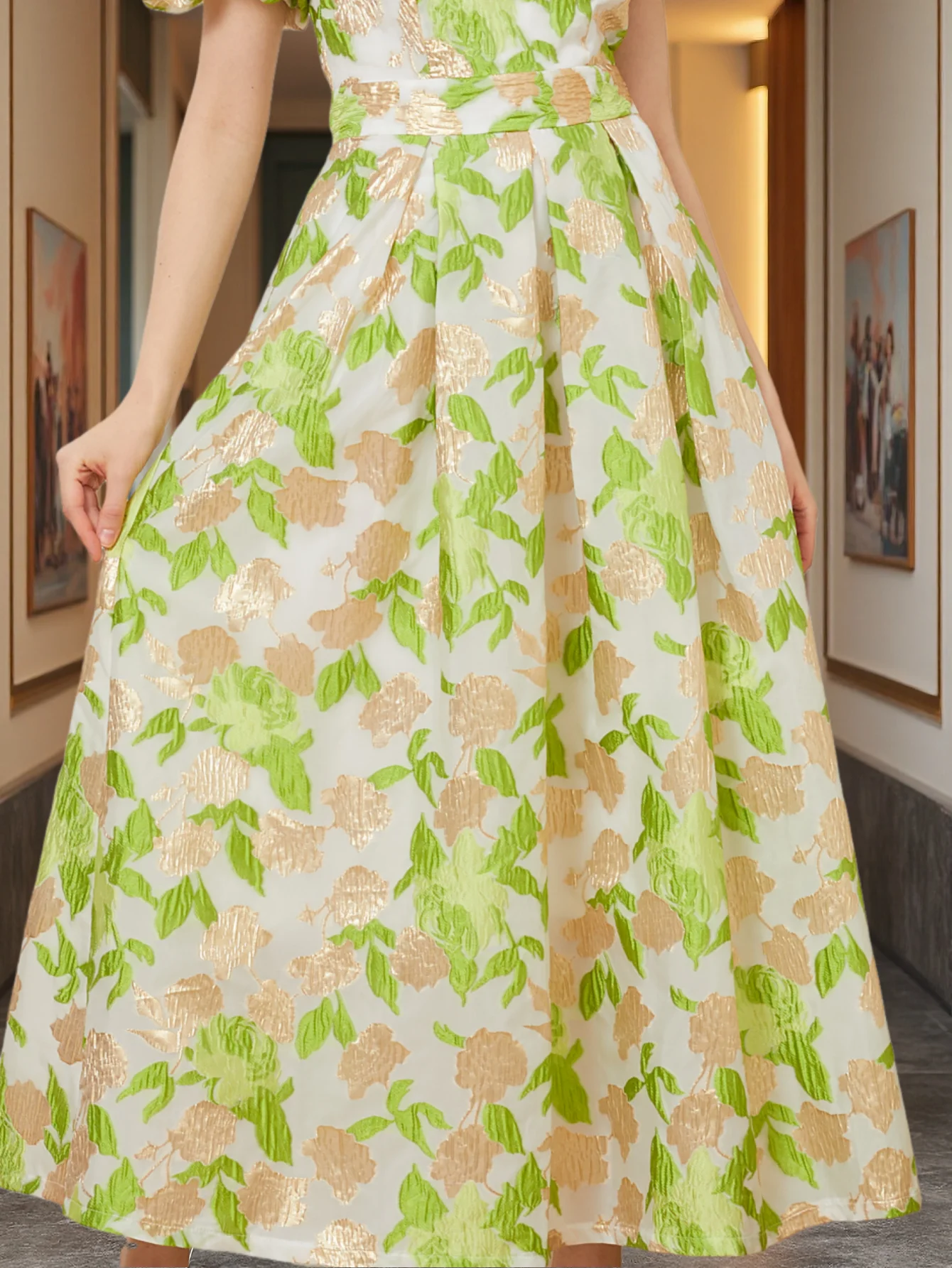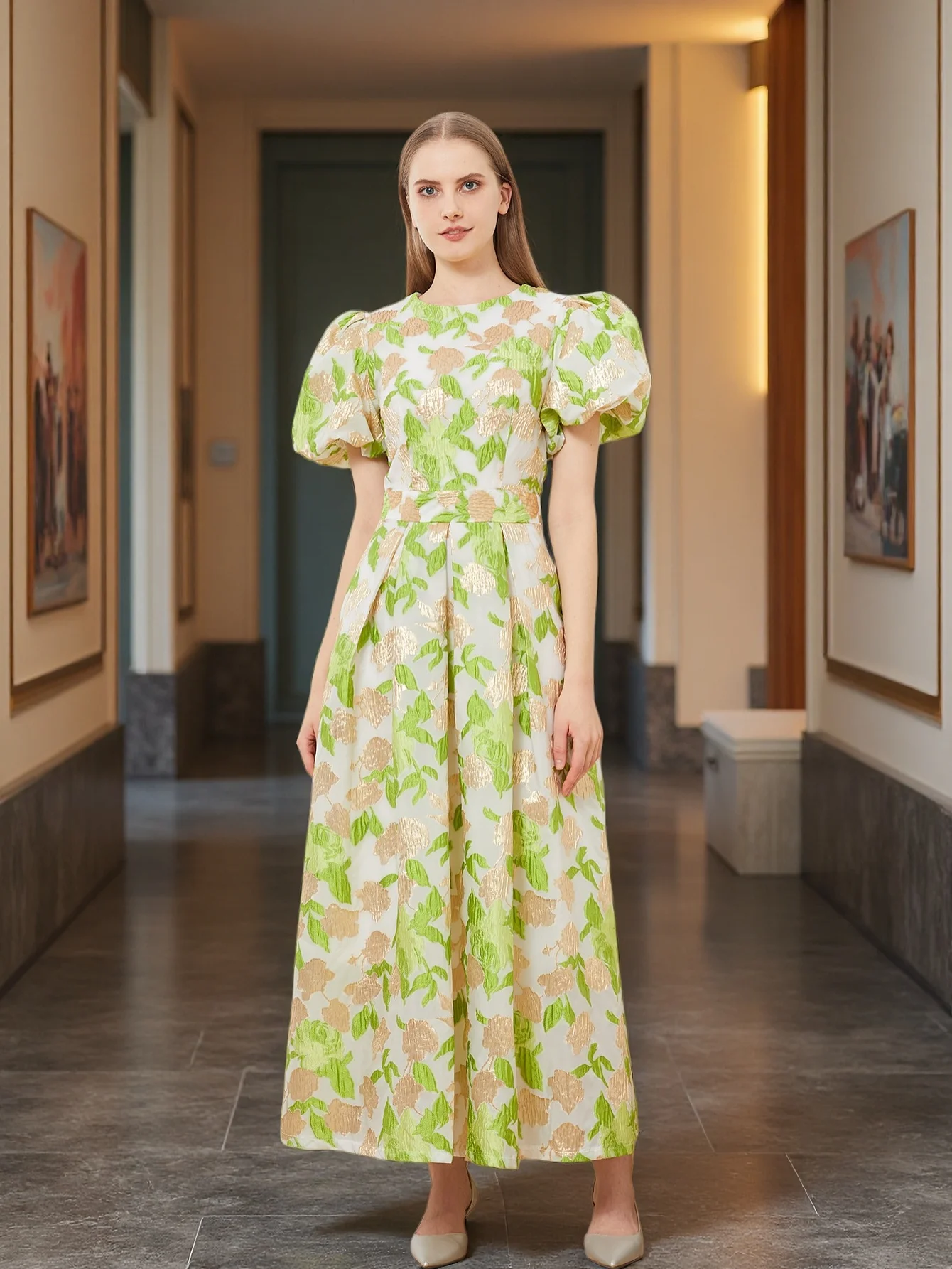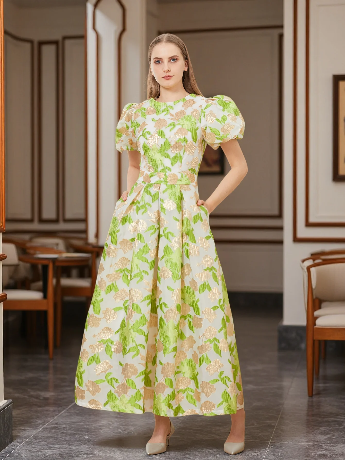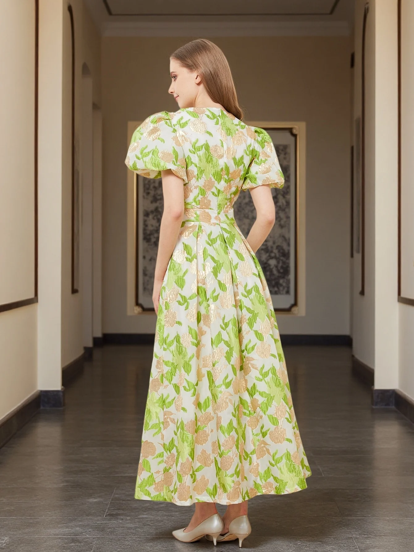เดรสยาวหรูหราแขนพัฟของผู้หญิงเดรสหรูหราใหม่ปักลายชุดเดรสปาร์ตี้เจ้าหญิงผ้าแจ็คการ์ดสำหรับงานพรอมชุดเดรสปาร์ตี้ดอกไม้สวยๆ - TopDealBox