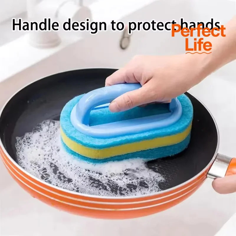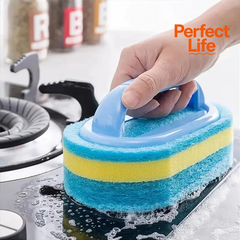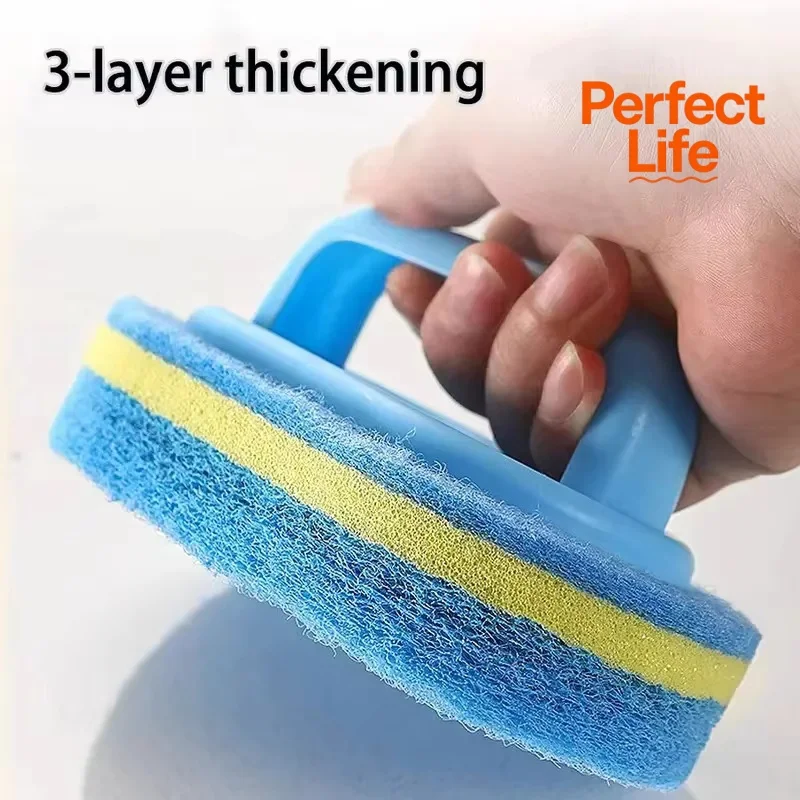 แปรงทำความสะอาดครัวพร้อมด้ามจับ - แปรงล้างหม้อ แผ่นขัดหนาความหนาแน่นสูง แปรงทำความสะอาดผนังกระเบื้องเซรามิก - TopDealBox