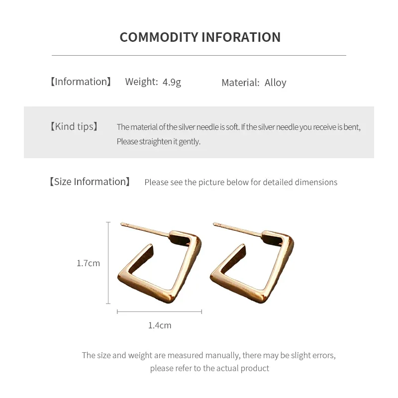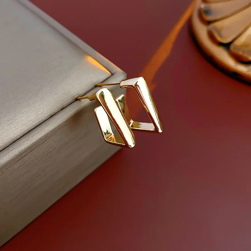 ต่างหูทรงเรขาคณิตทรงสี่เหลี่ยมสำหรับย้อนยุคสำหรับผู้หญิงต่างหูเม็ดเดี่ยวสีเงินสีทองแบบคลาสสิกอุปกรณ์เสริมหูแบบเปิดแฟชั่นเรียบง่าย - TopDealBox