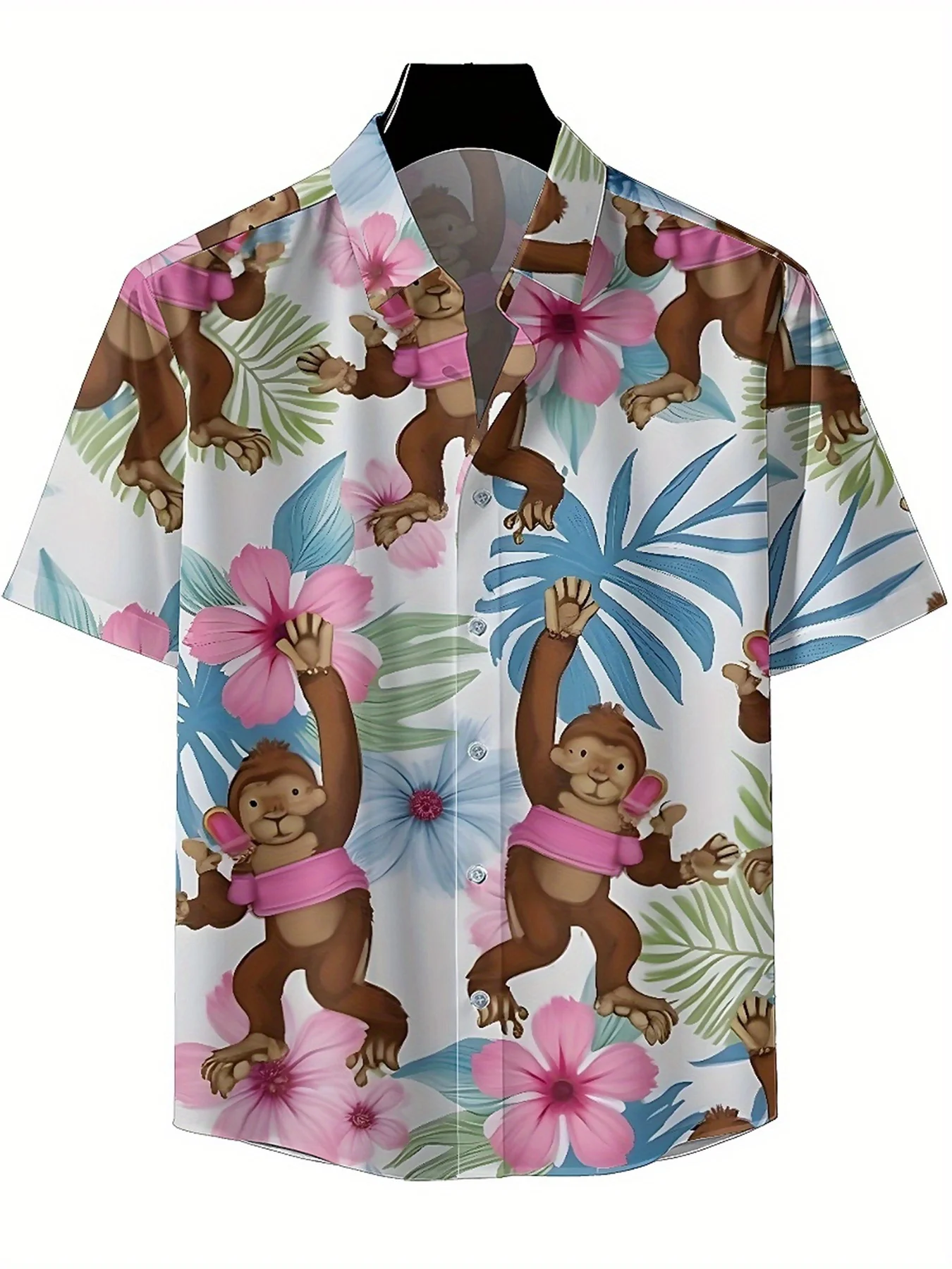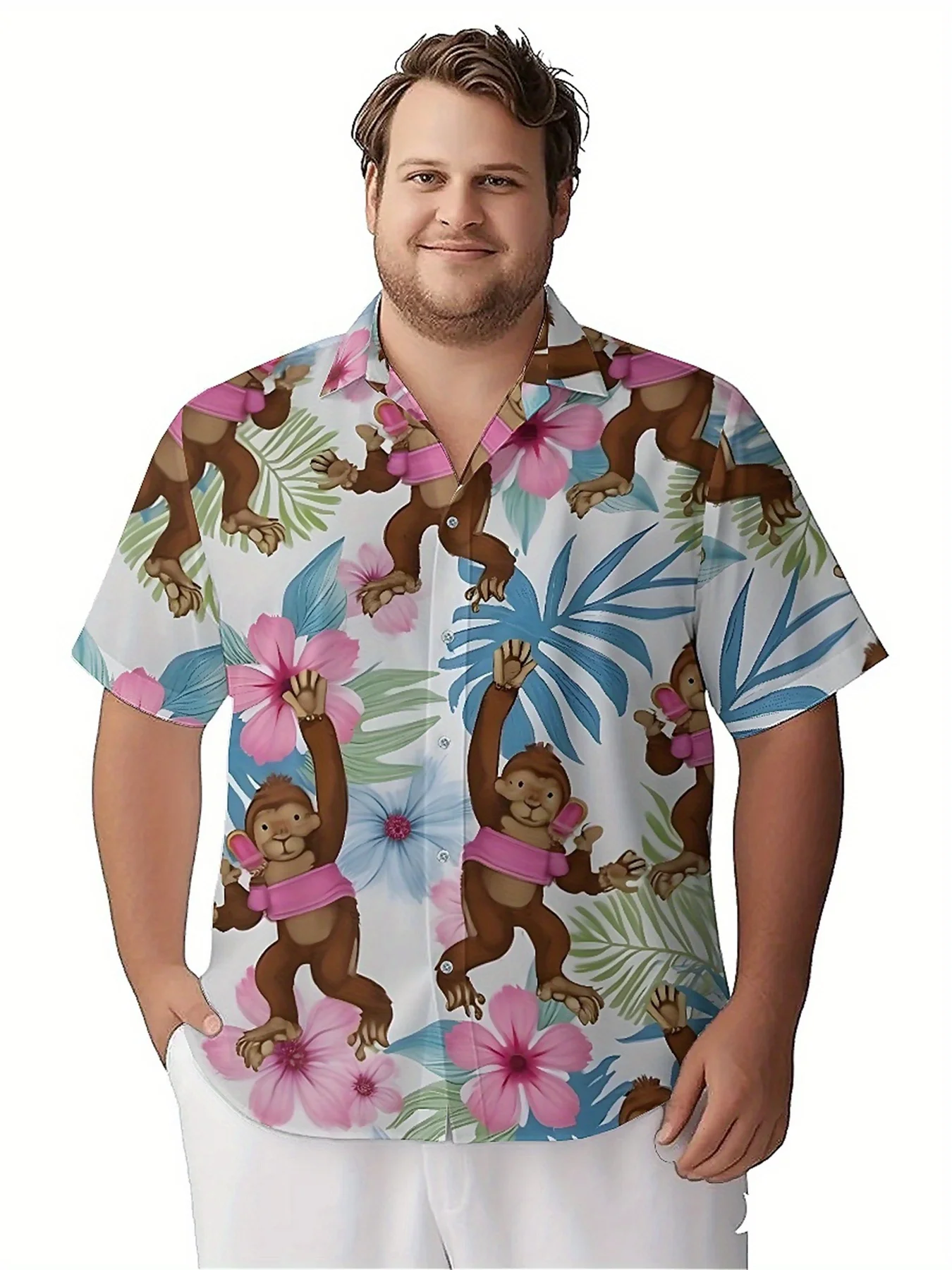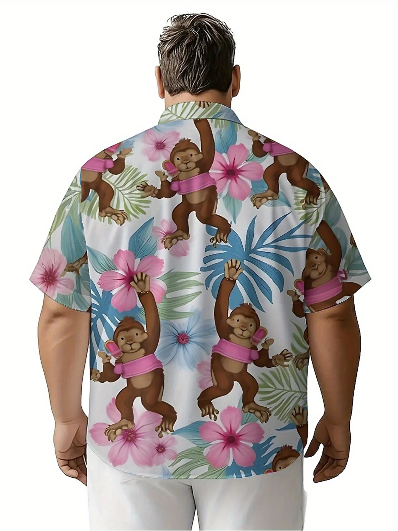 เสื้อฮาวายขนาดบวกของผู้ชายรูปแบบลิงเขตร้อน, เสื้อติดกระดุม, เสื้อผ้าลําลองสําหรับทั้งชายและหญิง, เสื้อฤดูร้อน - TopDealBox
