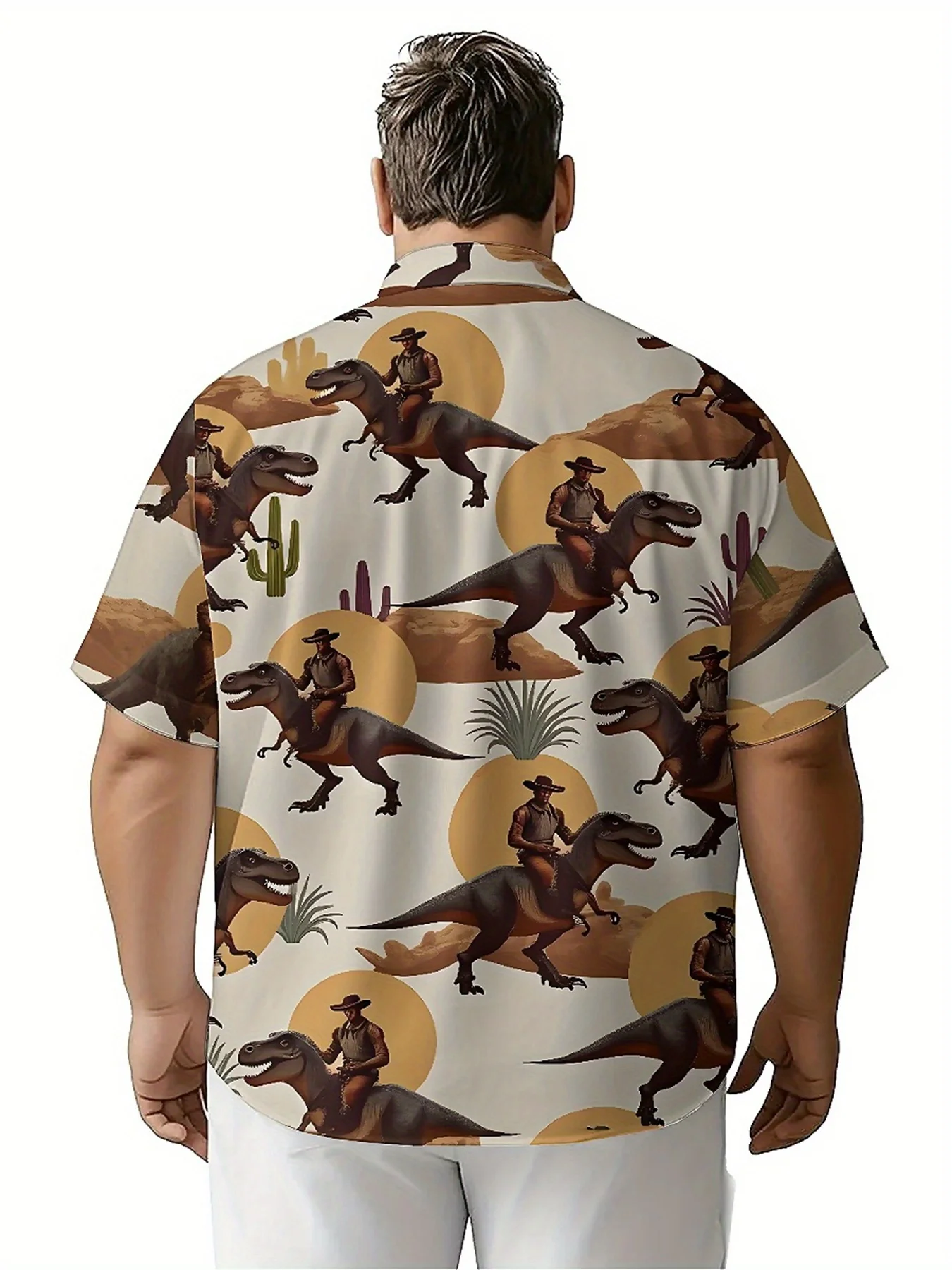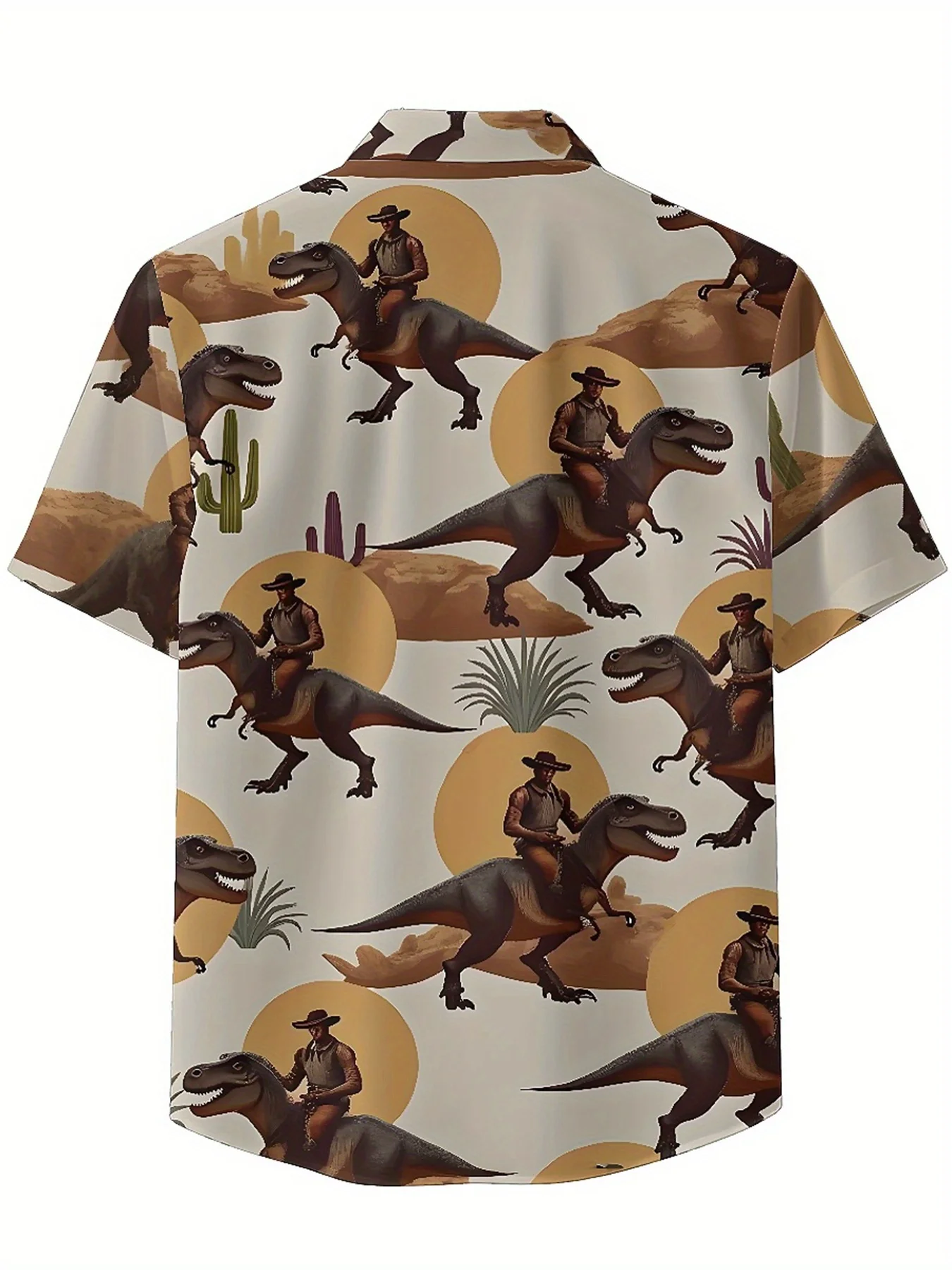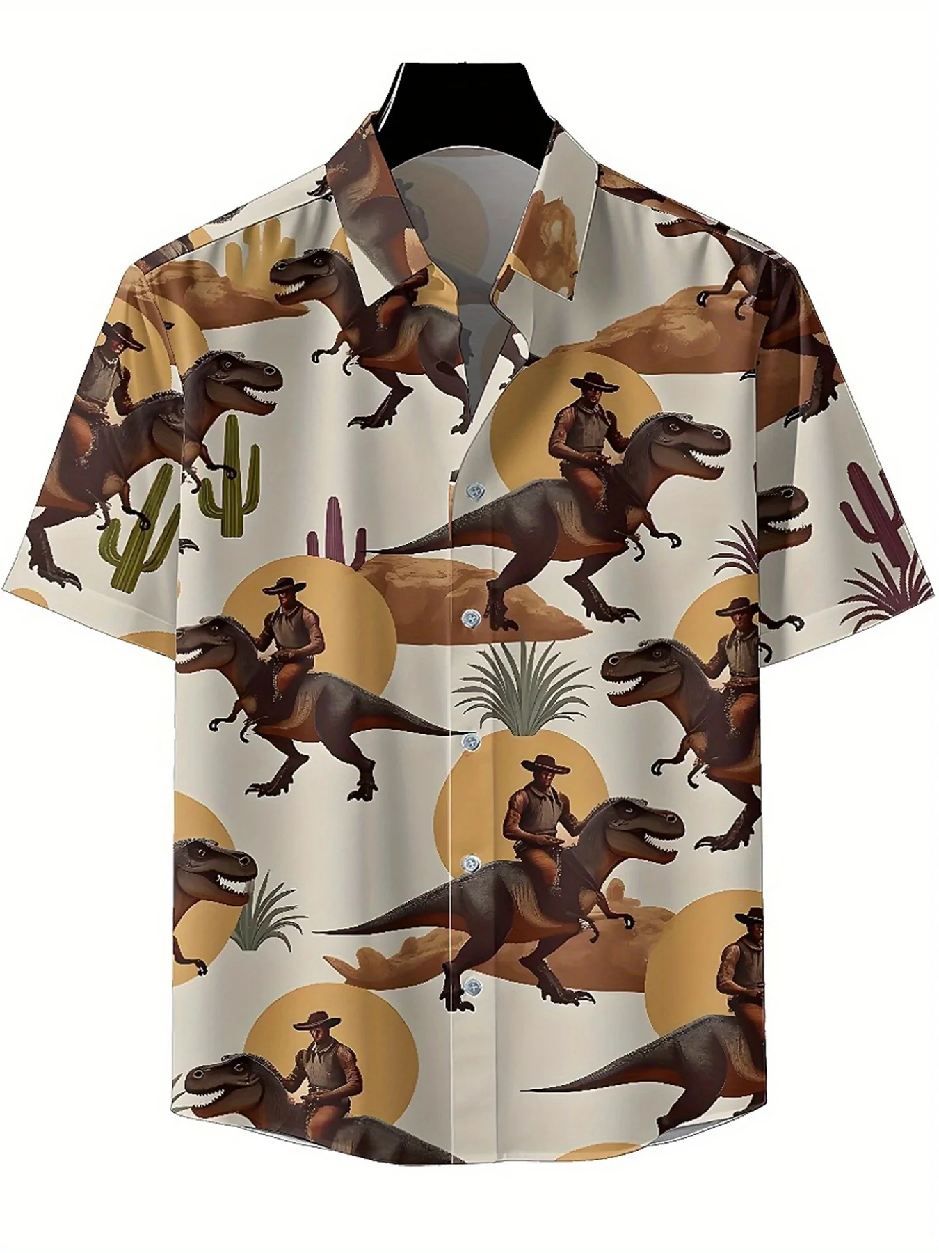 เสื้อฮาวายขนาดบวกของผู้ชายลายคาวบอยตะวันตกและการผจญภัยไดโนเสาร์, เสื้อเชิ้ตติดกระดุม, เสื้อผ้าลําลองสําหรับทั้งชายและหญิง, เสื้อฤดูร้อน - TopDealBox