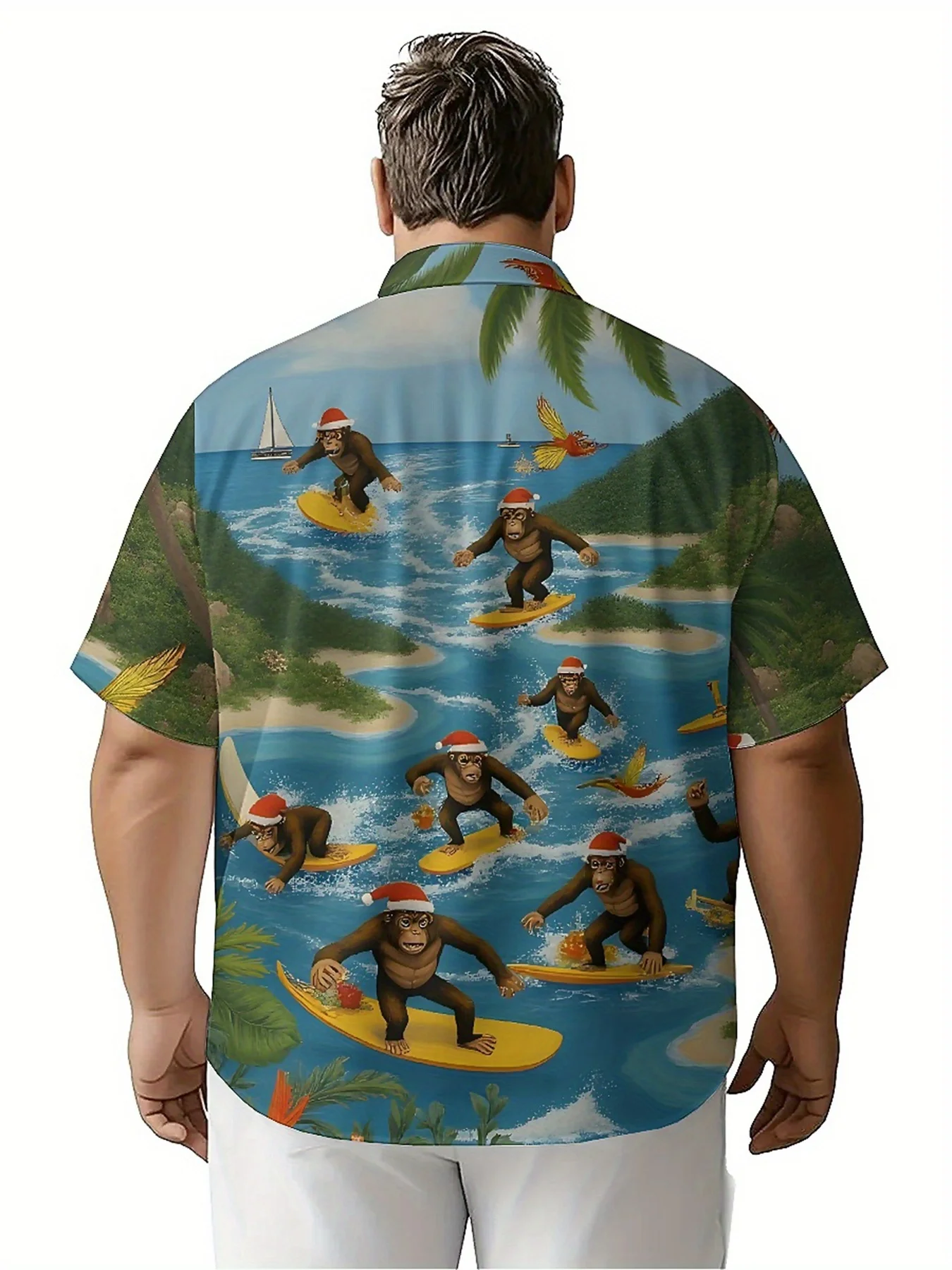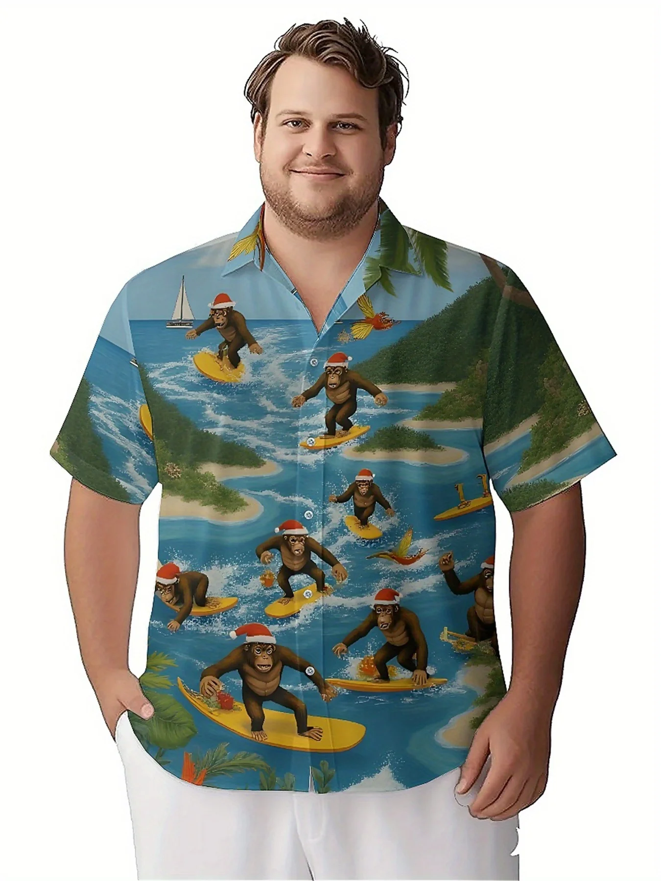ผู้ชายขนาดบวกเสื้อฮาวายทรอปิคอลท่องคริสต์มาสรูปแบบลิง,เสื้อแฟชั่นฤดูร้อนใหม่,ฮิปฮอปสตรี - TopDealBox