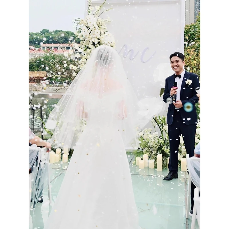ชุดแต่งงานผู้หญิงแบบหรูหรา ดีไซน์เปิดไหล่ ทรงเอไลน์ยาวเรียบง่าย รับตัดตามสั่ง - TopDealBox