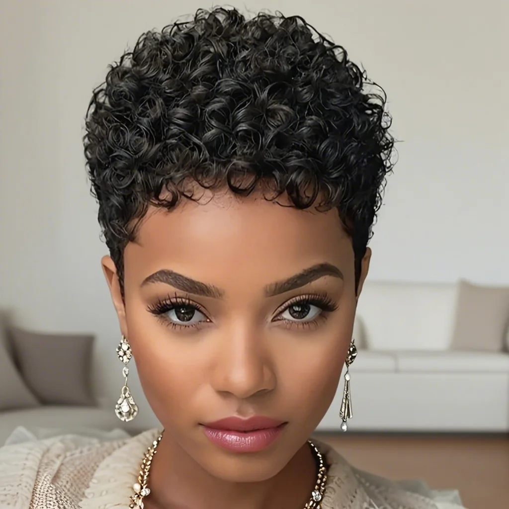 ♡ดูแบบย่อAfro Kinky Curlyวิกผมผมมนุษย์ 6/8 นิ้วเครื่องทําWigsสําหรับผู้หญิง-ปุยธรรมชาติPixieตัดวิกผม414.82 THBมาแรง★★★★★★3.8