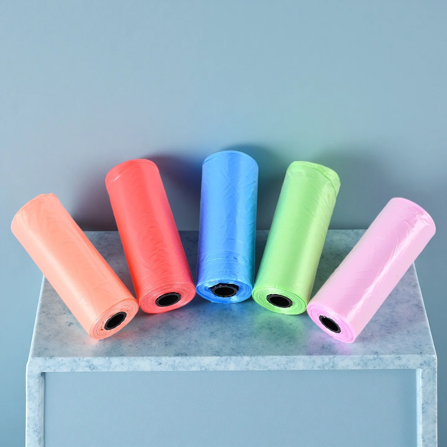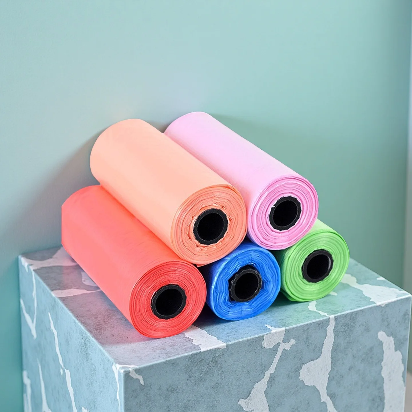 ถุงเก็บอุจจาระสัตว์เลี้ยงแบบม้วนใหม่ ย่อยสลายได้ หนาขึ้น สำหรับทำความสะอาดกลางแจ้ง พร้อมที่ตัดถุงในตัว สำหรับสุนัขและแมว