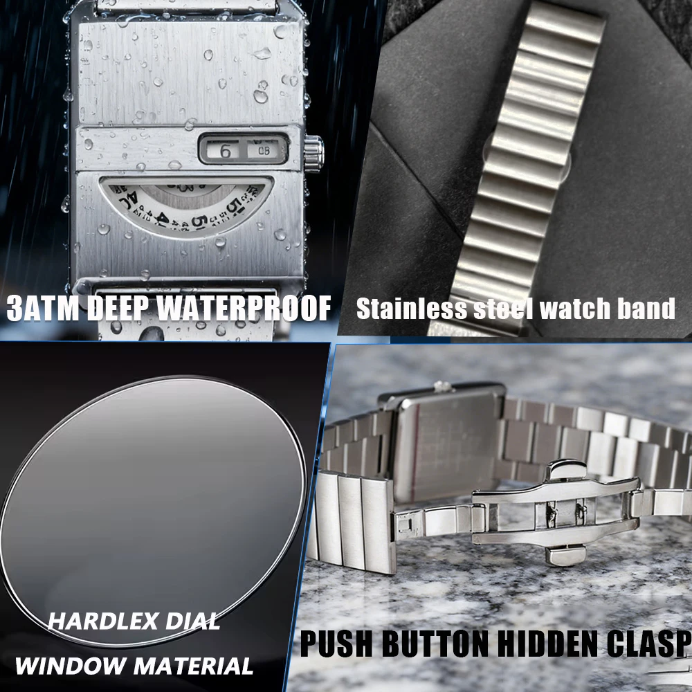 นาฬิกาคู่ทรงเหลี่ยม สายสแตนเลสสีเงิน ดีไซน์ใหม่ทันสมัย สำหรับผู้ชาย ของขวัญสุดเก๋ นาฬิกาควอตซ์แบบยูนิเซ็กส์ - TopDealBox