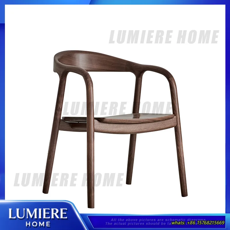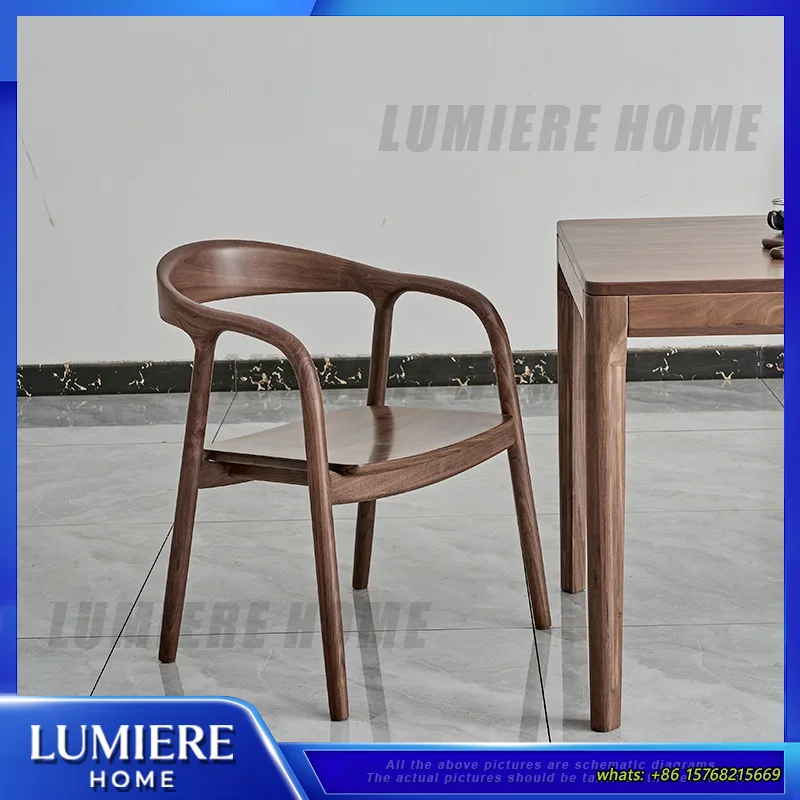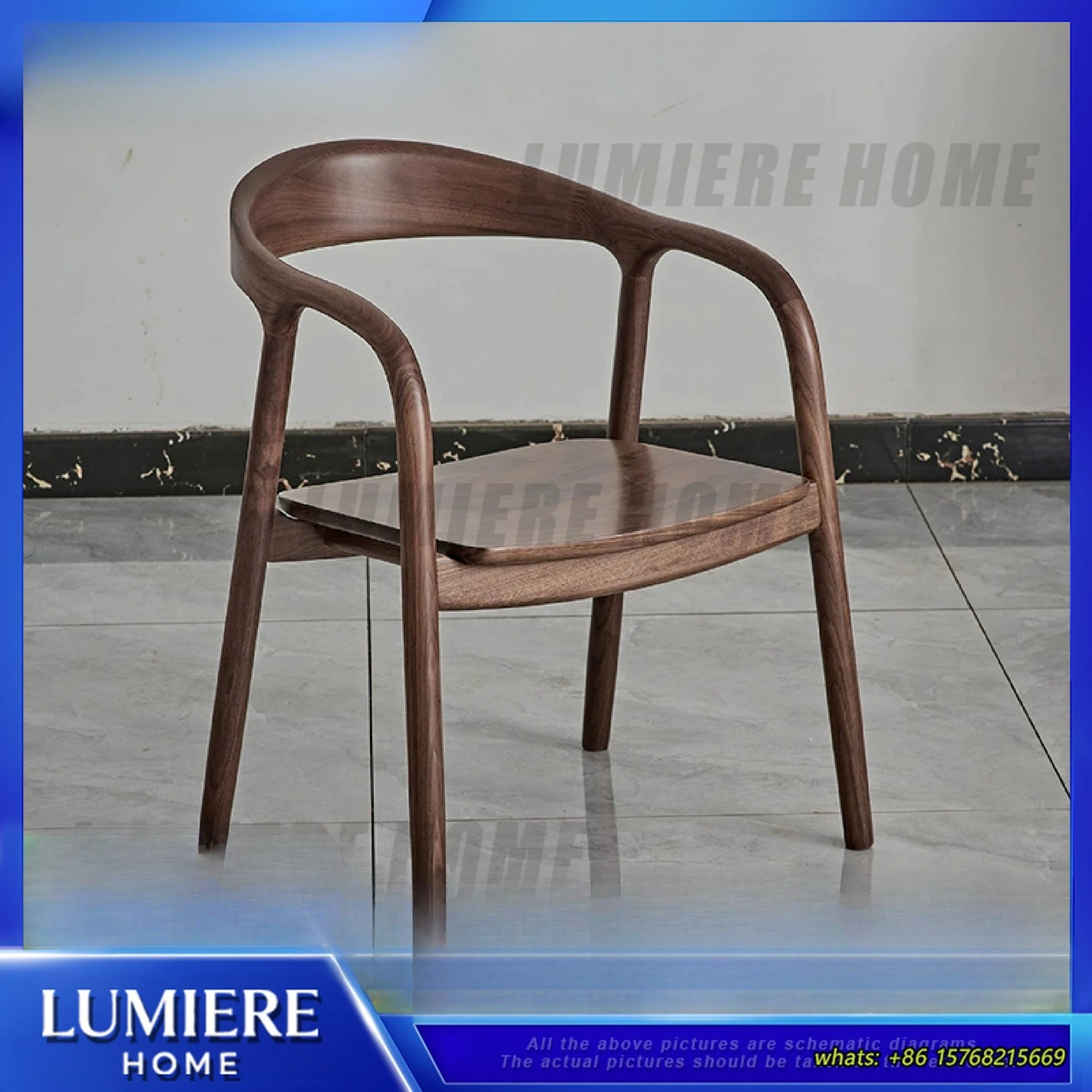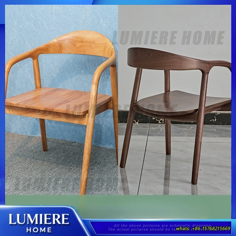เก้าอี้ทานอาหารไม้เนื้อแข็งพร้อมที่วางแขน ไม้ยางพารา สีวอลนัทดำ ใช้ในเชิงพาณิชย์หรือที่บ้าน สไตล์วินเทจ เก้าอี้กาแฟที่นั่งสบาย - TopDealBox