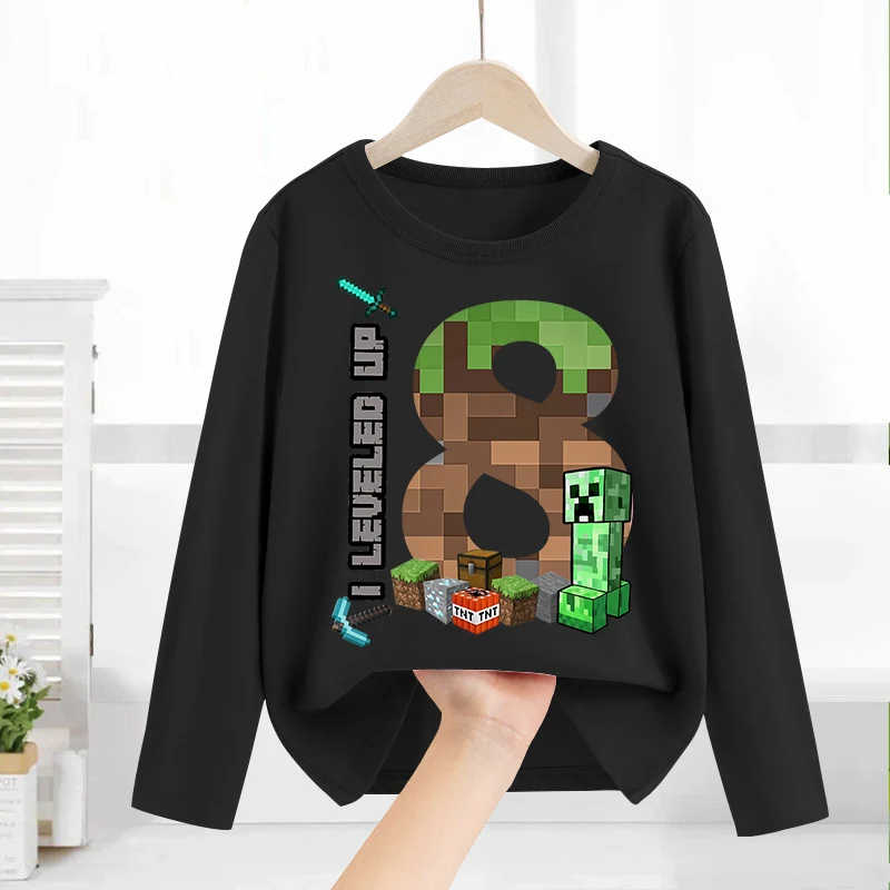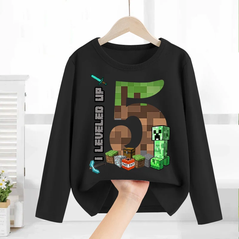 เสื้อยืดแขนยาวลายการ์ตูนธีมเกมสำหรับเด็กผู้ชาย ของขวัญวันเกิด เสื้อผ้าฤดูใบไม้ร่วง ของขวัญวันเกิด - TopDealBox