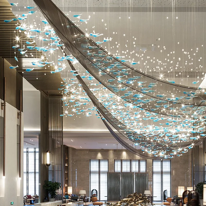 ♡ดูแบบย่อร้านอาหารปลาปิ้งแบบสร้างสรรค์ หม้อไฟ ห้างสรรพสินค้า โคมไฟแขวนเพดาน ตกแต่งทางเดิน โคมไฟปลา โคมไฟเพดานรูปปลา94.33 THBมาแรง