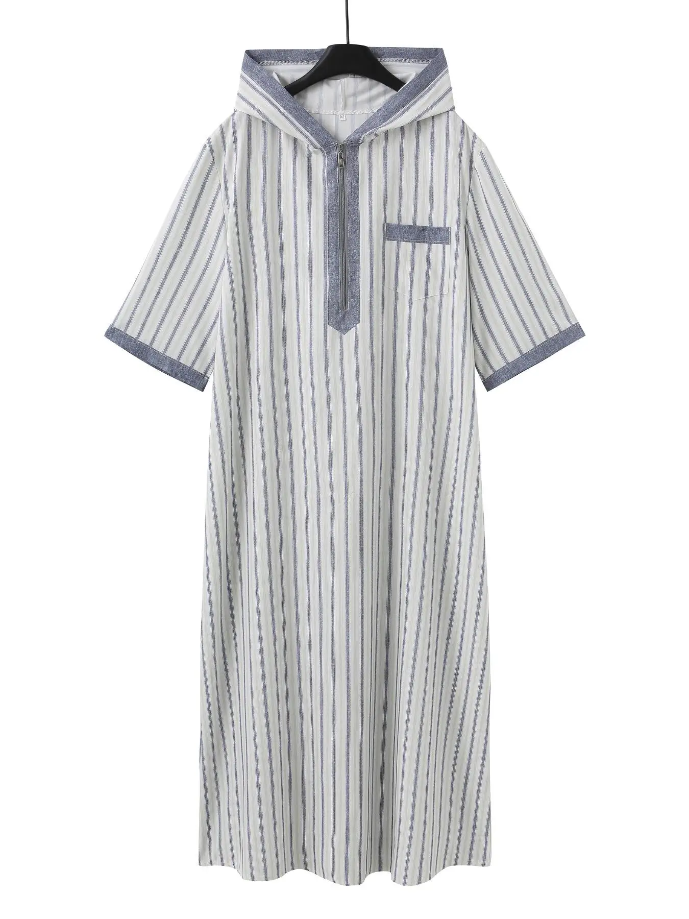 เสื้อคลุมมีฮู้ดลายทางแบบดั้งเดิมสำหรับผู้ชาย แขนสั้น ทรงหลวม สวมใส่สบาย เหมาะสำหรับการประกอบพิธีกรรม สไตล์แอฟริกันและตะวันออกกลาง ทรงหลวม - TopDealBox