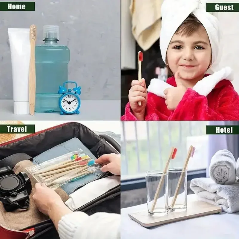 ชุดแปรงสีฟันไม้ไผ่ห่อหนังวัวเดี่ยวแท็บเล็ตแปรงสีฟันไม้ไผ่ธรรมชาติและเป็นมิตรกับสิ่งแวดล้อม หนึ่งกล่อง 10 ชิ้น - TopDealBox