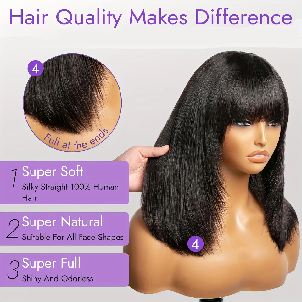♡ดูแบบย่อ30 นิ้ว Body Wave วิกผมผมมนุษย์กับ Bangs สั้น Bob วิกผมความหนาแน่น 180% บราซิล Fringe Remy เต็มรูปแบบทําวิกผมสําหรับผู้หญิง856.23 THBมาแรง★★★★★4.1