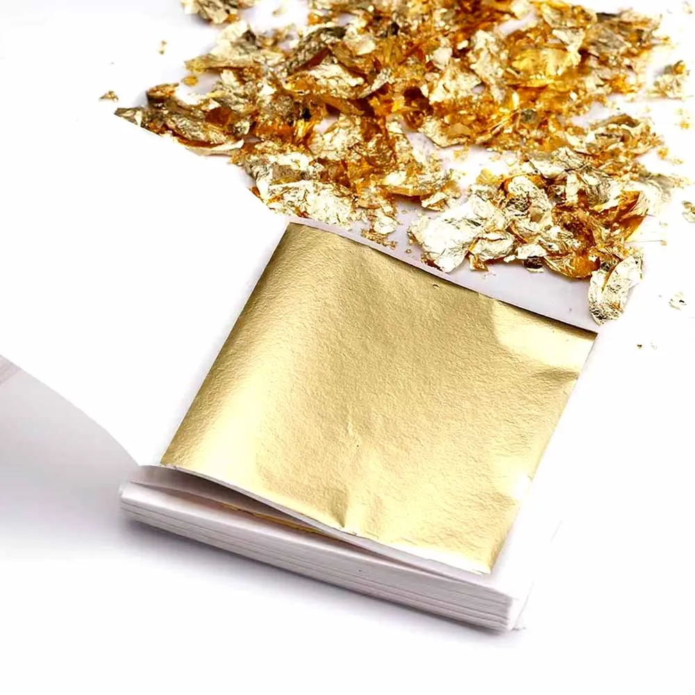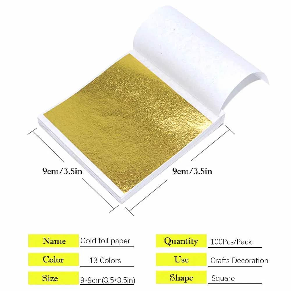 กระดาษฟอยล์สีทองเงินเทียม100แผ่น/แพ็คสำหรับงานฝีมือปูนปลาสเตอร์แผ่นเกล็ดกระดาษปิดทองศิลปะการตกแต่งบ้านเล็บขนาด9*9ซม. - TopDealBox