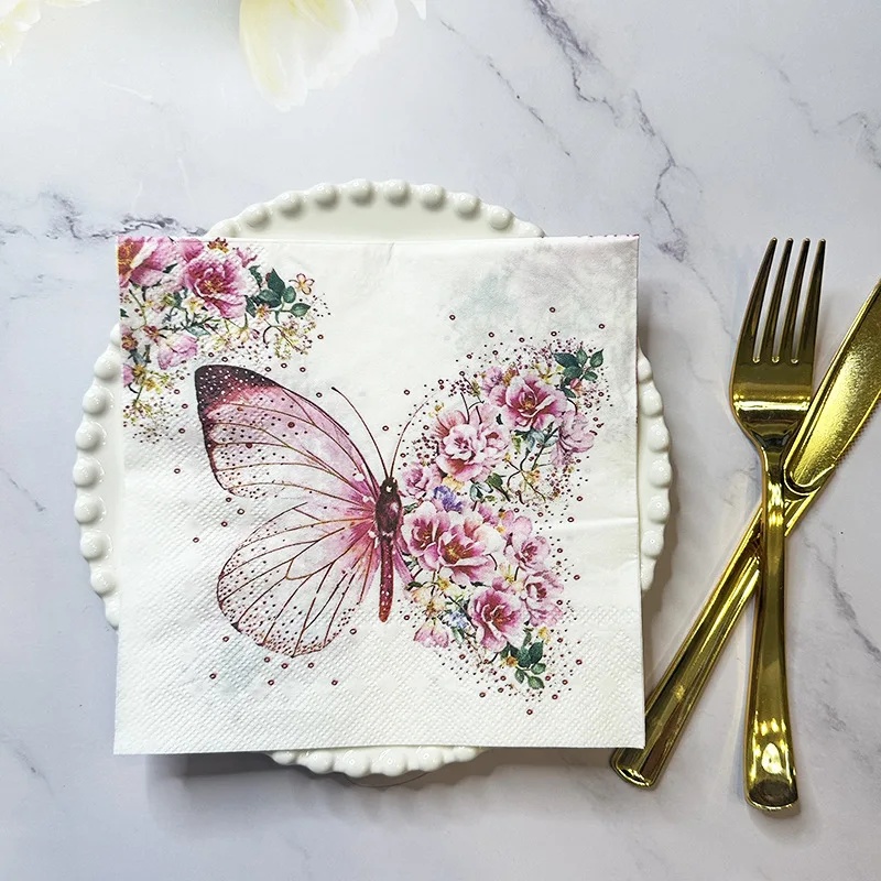 ♡ดูแบบย่อ10/20ชิ้น/แพคกระดาษเช็ดปาก2ชั้นสีทองบลูมแผ่นรองผ้าเช็ดปากแก้วใส่ดอกไม้งานแต่งงานปาร์ตี้ไวน์กระดาษลายผีเสื้อแบบทำมือ41.03 THBมาแรง