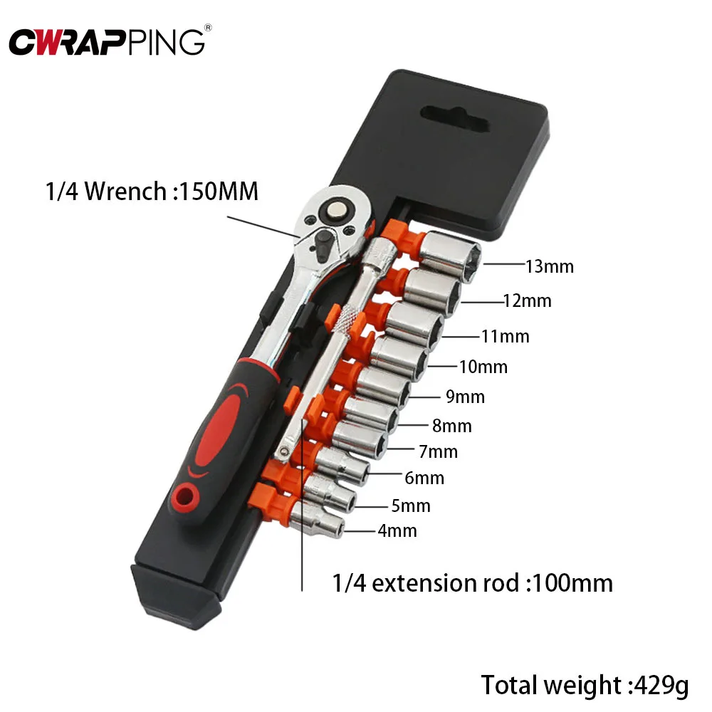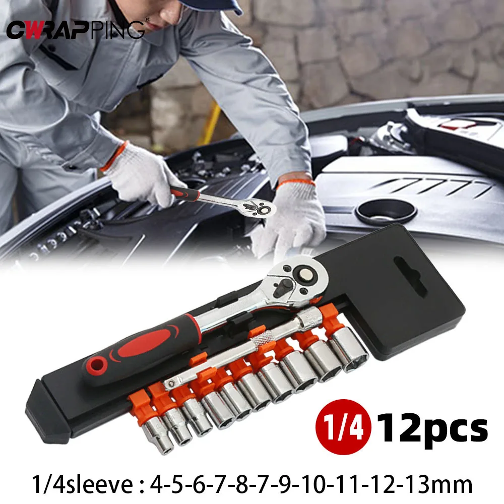 ชุดประแจบล็อกพร้อมด้ามขัน 1/4 นิ้ว ชุดซ่อมรถมอเตอร์ไซค์ จักรยาน เรือ รถยนต์ อุปกรณ์ซ่อมมอเตอร์ไซค์อเนกประสงค์ ชุดเครื่องมือ 12 ชิ้น