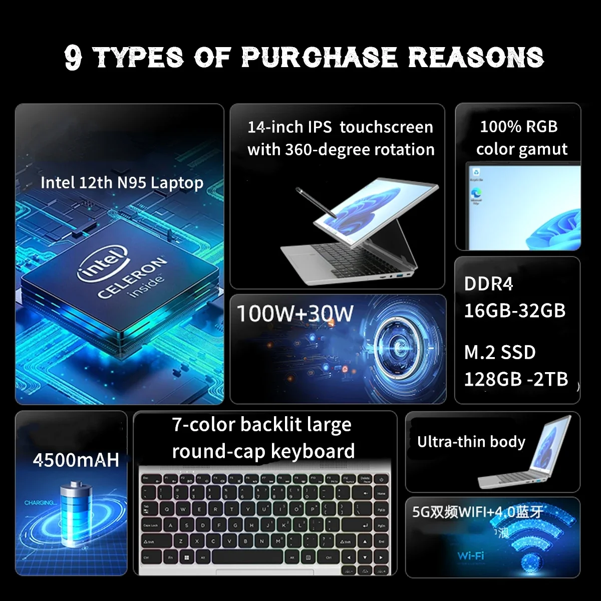 ♡ดูแบบย่อโน้ตบุ๊กพีซีขนาด 15.6 นิ้ว รุ่น N5095 พร้อมแรมสูงสุด 32GB, ระบบปฏิบัติการ Windows 11 Pro ความจุ 2TB พร้อมคีย์บอร์ดเรืองแสงสีดำทันสมัย รองรับภาษาอังกฤษ/รัสเซีย8647.39 THBมาแรง