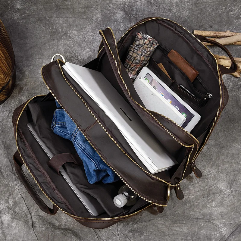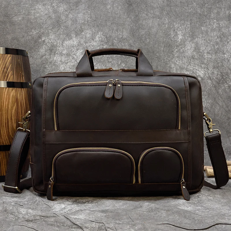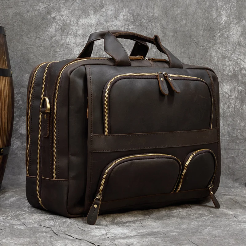 17.3 นิ้วแล็ปท็อปกระเป๋าเอกสารหนังแท้กระเป๋าแล็ปท็อปกระเป๋าเดินทางกระเป๋าถือสําหรับชายขนาดใหญ่กระเป๋า Retro - TopDealBox