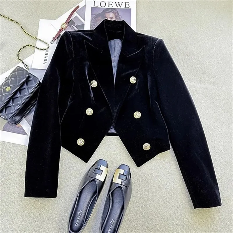 ♡ดูแบบย่อสีดําCropped Blazersผู้หญิงแนวโน้ม 2024 ใหม่All-Match Notched COLLAR Crop JACKETผู้หญิงเกาหลีเก๋ปุ่มเดียวเสื้อสูท399.43 THBมาแรง★★★★★★4.9