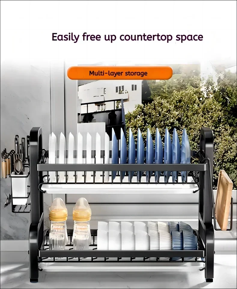 2025 ใหม่จานDrying Rack 2 ชั้นขนาดกะทัดรัดจานDrainboardชุดขนาดใหญ่สนิมจานDrainerพร้อมผู้ถือภาชนะ - TopDealBox