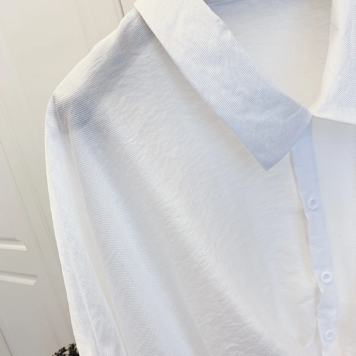 ♡ดูแบบย่อฤดูใบไม้ผลิฤดูร้อนใหม่แฟชั่นผู้หญิงสีขาวสีทึบแขนยาว Turn-Down COLLAR หลวมสบายๆอินเทรนด์เสื้อเสื้อผ้าหญิงเสื้อ338.01 THBมาแรง