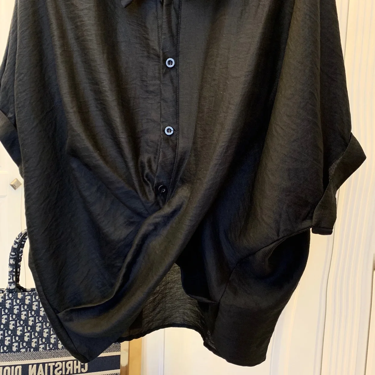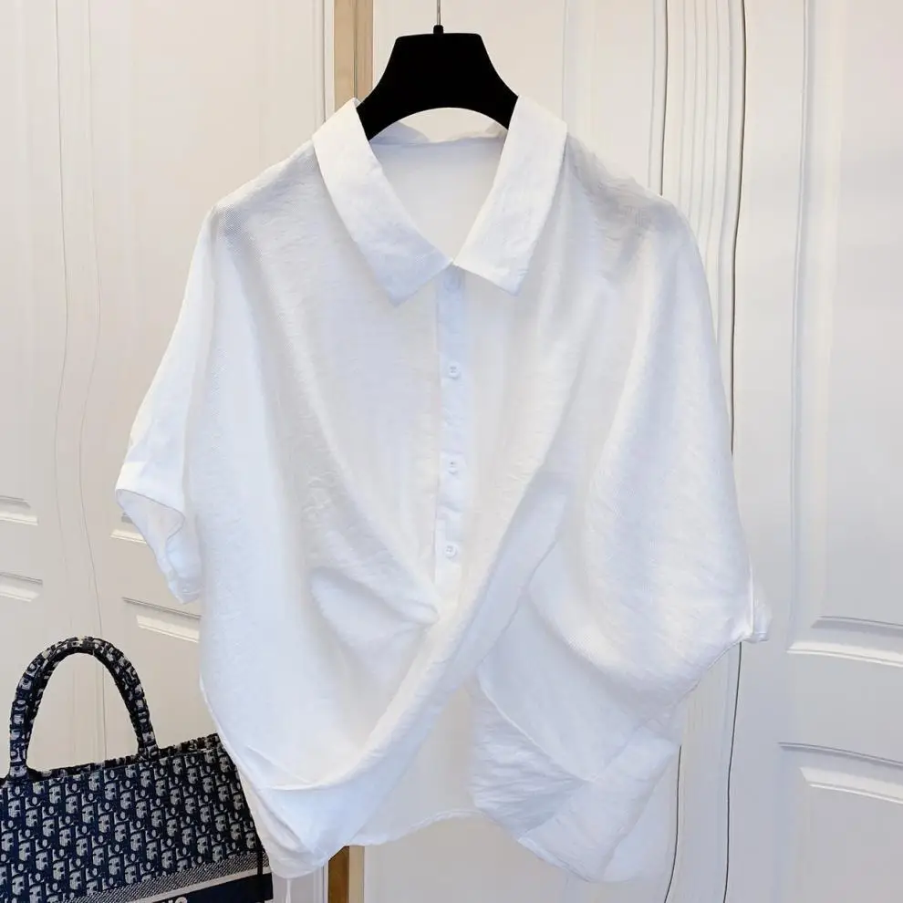 ♡ดูแบบย่ออเมริกันยุโรปใหม่แฟชั่นฤดูร้อนผู้หญิงหลวมแขนสั้น Turn-Down COLLAR Solid Single-breasted เสื้อเสื้อผ้าหญิง Tops156.58 THBมาแรง