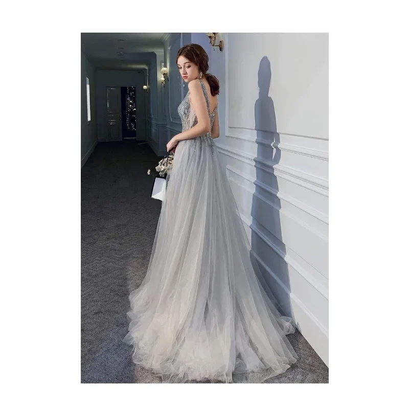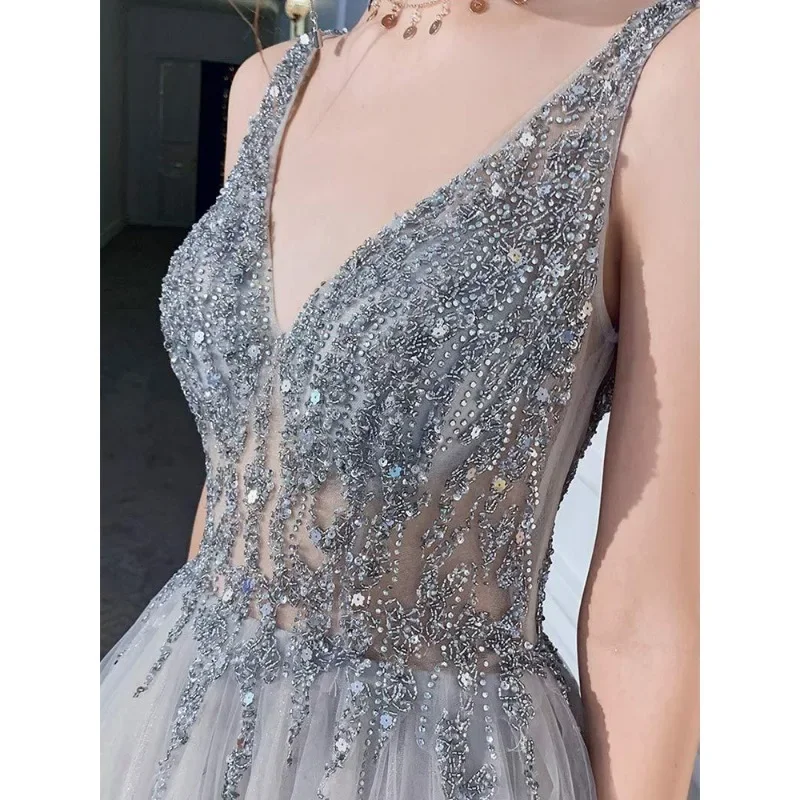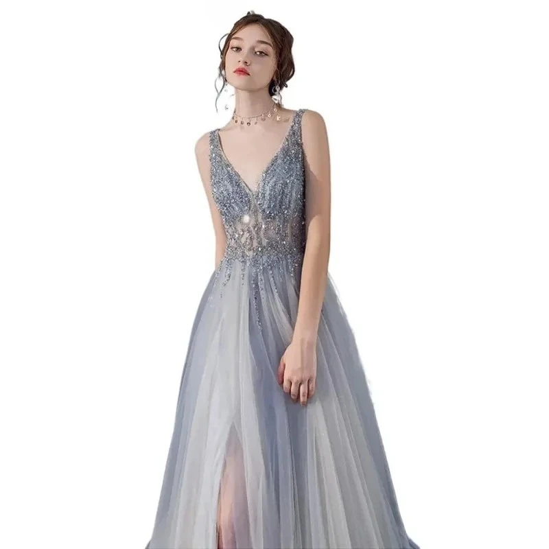 ชุดราตรีหรูหราคุณภาพสูงสำหรับผู้หญิงปี 2026 คอวี เซ็กซี่ โชว์หลัง ประดับเลื่อม เหมาะสำหรับงานเลี้ยงฉลองวันเกิด งานเลี้ยงระดับไฮเอนด์ ชุดยาว - TopDealBox