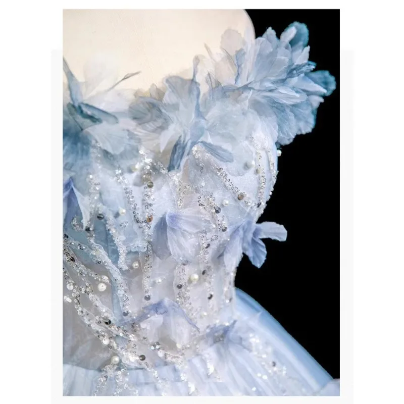 ชุดราตรีสีน้ำเงินแบบใหม่สำหรับผู้หญิงปี 2026 แบบเปิดไหล่ข้างเดียว ประดับเลื่อม แฟชั่นสำหรับงานแสดง งานพิธี งานเลี้ยง ชุดเดรสโดดเด่นสำหรับพิธีกรผู้ใหญ่ - TopDealBox