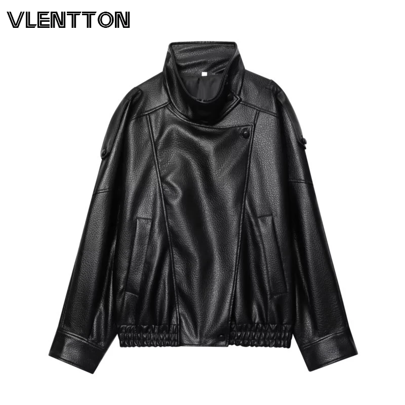 เสื้อแจ็คเก็ตหนังเทียมสีดำแฟชั่นผู้หญิงใหม่ปี 2026 เสื้อโค้ทลำลองทรงหลวมสำหรับฤดูใบไม้ร่วงและฤดูหนาว มีซิปและกระเป๋า เสื้อคลุมสไตล์ไบค์เกอร์สำหรับผู้หญิง - TopDealBox
