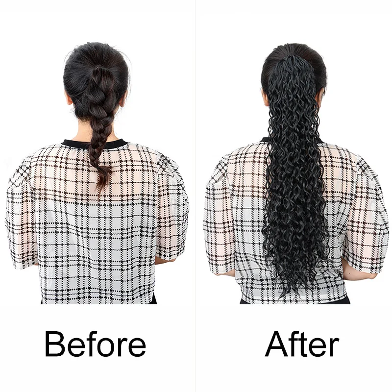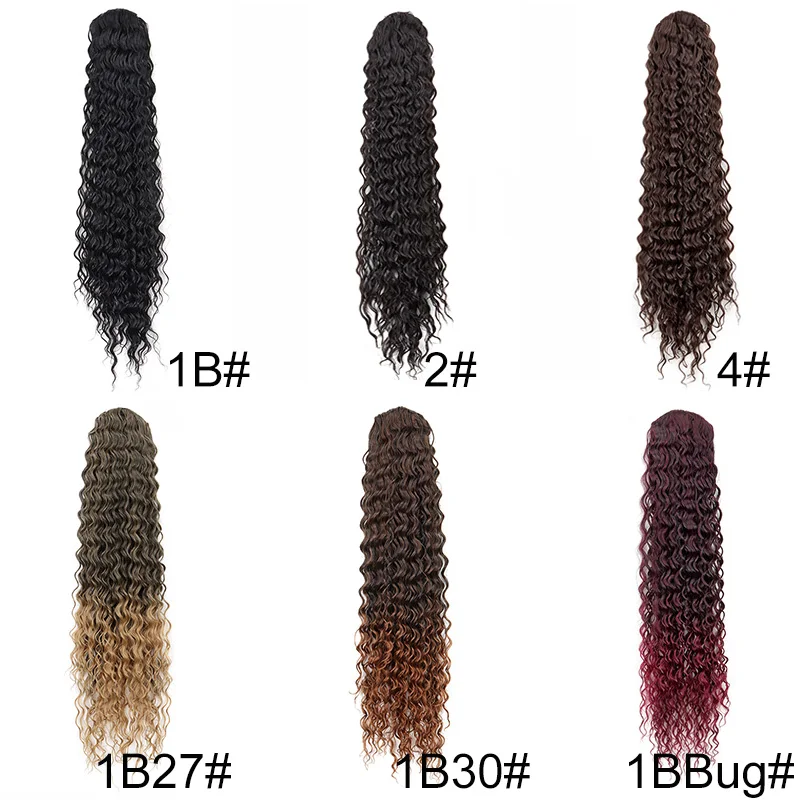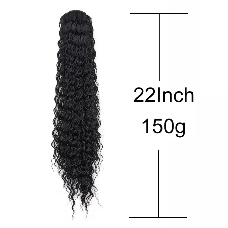 22 นิ้วสังเคราะห์ Kinky Curly คลิปในต่อผมหางม้าอุณหภูมิสูง Drawstring ลึก Wavy Ponytail Hairpiece สําหรับผู้หญิง - TopDealBox
