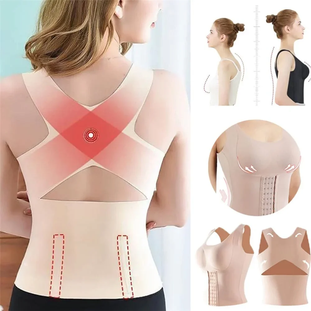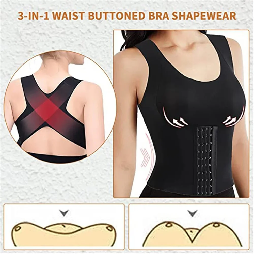 ผู้หญิง 3 ใน 1 เอวปุ่ม Bra จัดแต่งทรงผมเสื้อผ้าท่าทาง Corrector ลดน้ําหนักข้ามกลับชุดชั้นใน Belly เสื้อยืดแขนกุด - TopDealBox