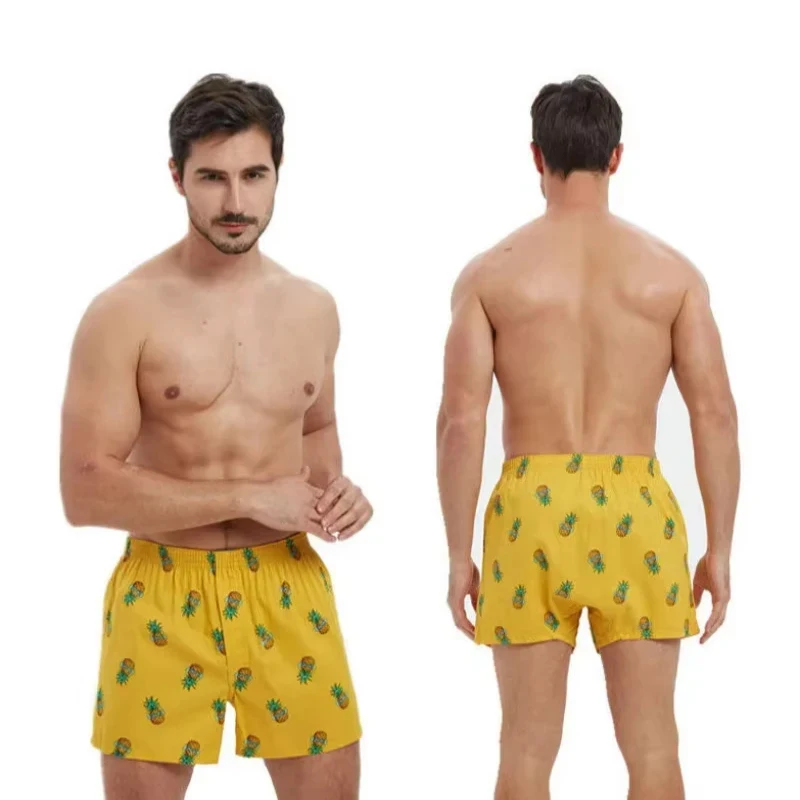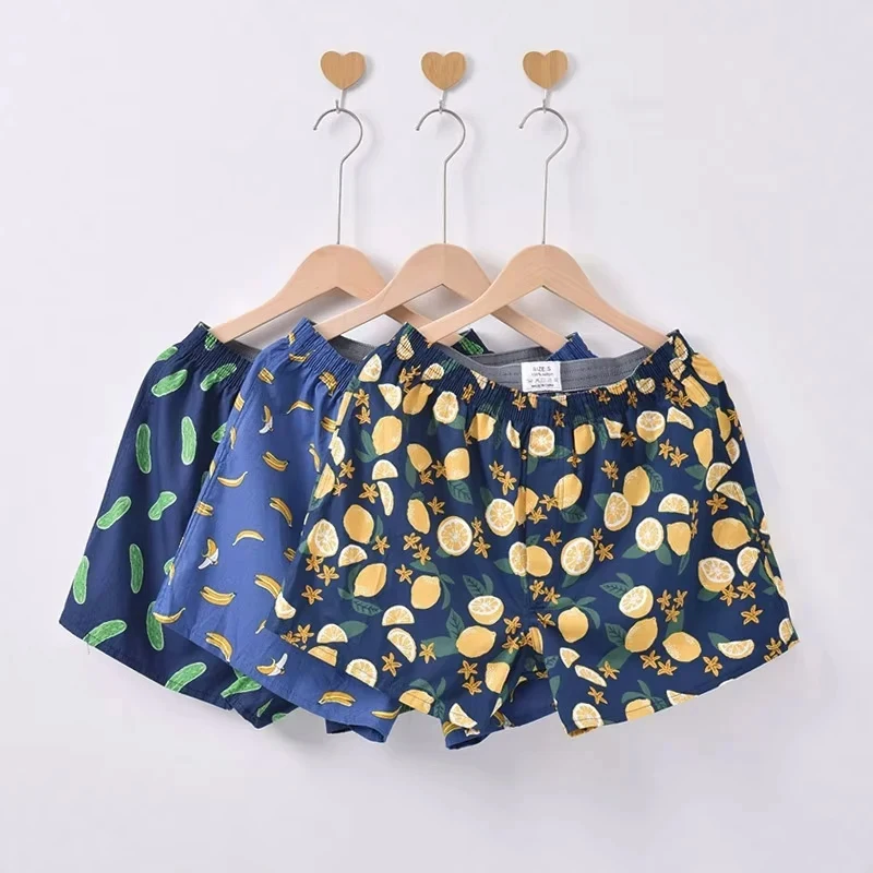 กางเกงในบ็อกเซอร์ของผู้ชายพิมพ์ลาย3ชิ้นกางเกงบ๊อกเซอร์ผ้าคอตตอนแท้ลำลองทรงหลวมสี่มุมกางเกงเสื้อใส่อยู่บ้านใส่นอนกางเกงชายหาด - TopDealBox