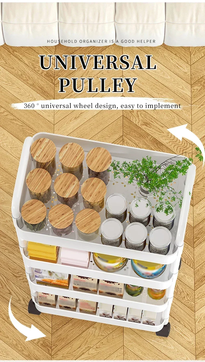มัลติฟังก์ชั่น 3-4-5 ชั้นรถเข็นเก็บพลาสติกกลิ้งพร้อมที่วางแขน - ออแกไนเซอร์หลายห้องประหยัดพื้นที่เคลือบด้าน - TopDealBox