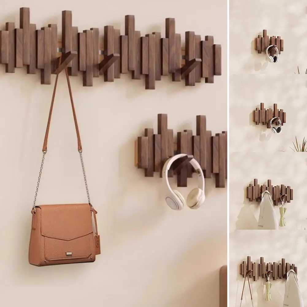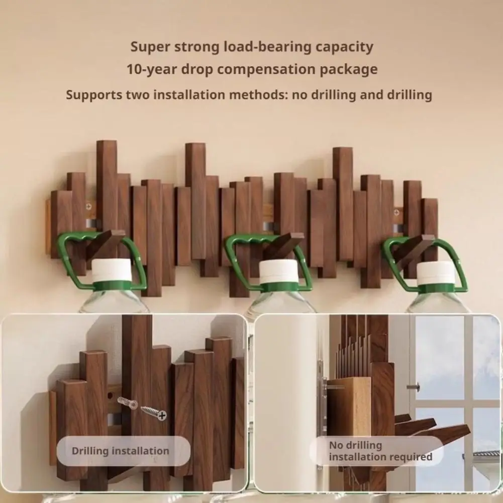 ราวแขวนไม้เนื้อแข็งแบบติดผนัง รูปทรงคีย์เปียโน สำหรับแขวนเสื้อผ้า หมวก ใช้ได้กับประตู ห้องโถง ห้องนั่งเล่น ห้องนอน ไม่ต้องเจาะผนัง มี 3 4 6 8 ตะขอ - TopDealBox
