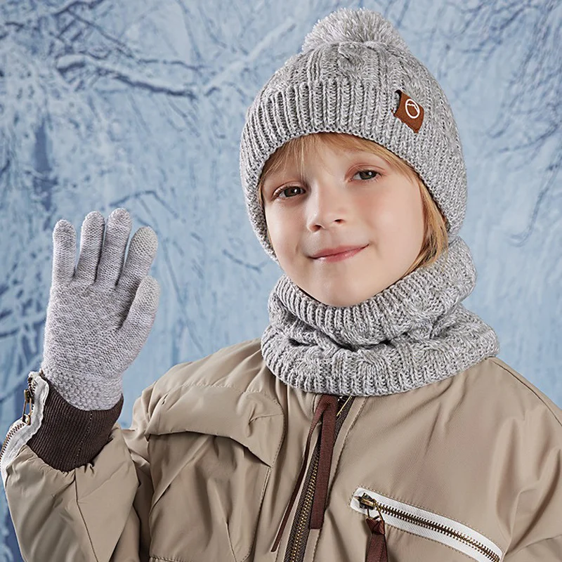 ♡ดูแบบย่อ4 ชิ้น/เซ็ตเด็กถักหมวกหนาคอผ้าพันคอถุงมือถุงมือเล่นกลางแจ้งสําหรับสภาพอากาศหนาวเย็นฤดูหนาวจําเป็น392.35 THBมาแรง