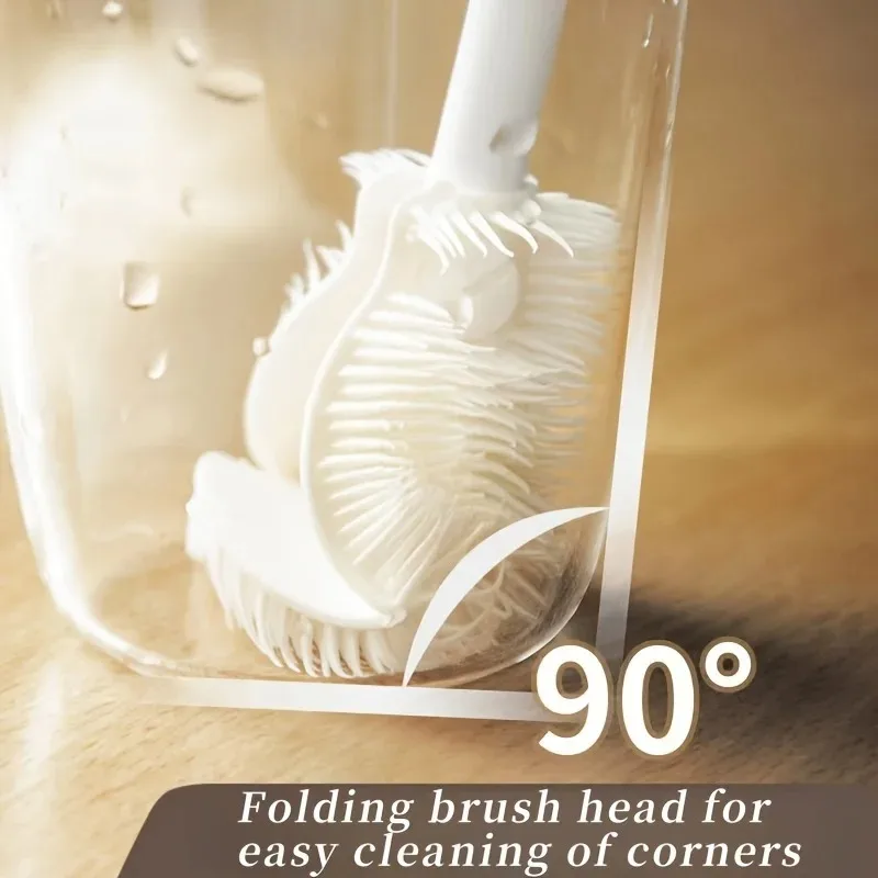 แปรงซิลิโคนทำความสะอาดแบบพับได้ 360 องศา พร้อมด้ามจับยาว ใช้ซ้ำได้สำหรับขวดและแก้ว - TopDealBox