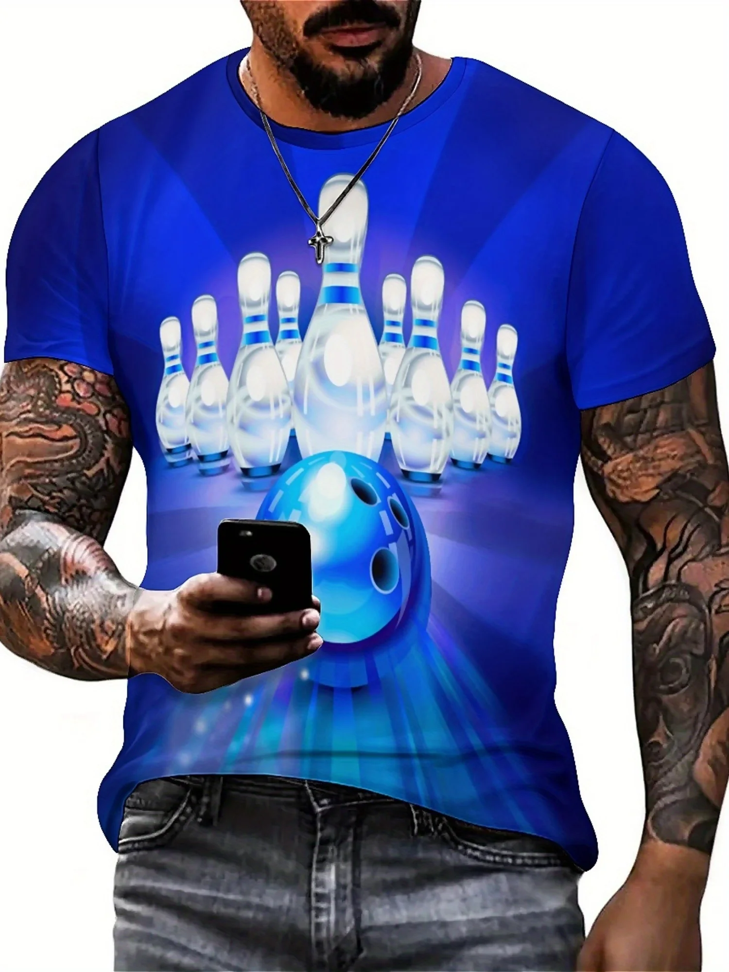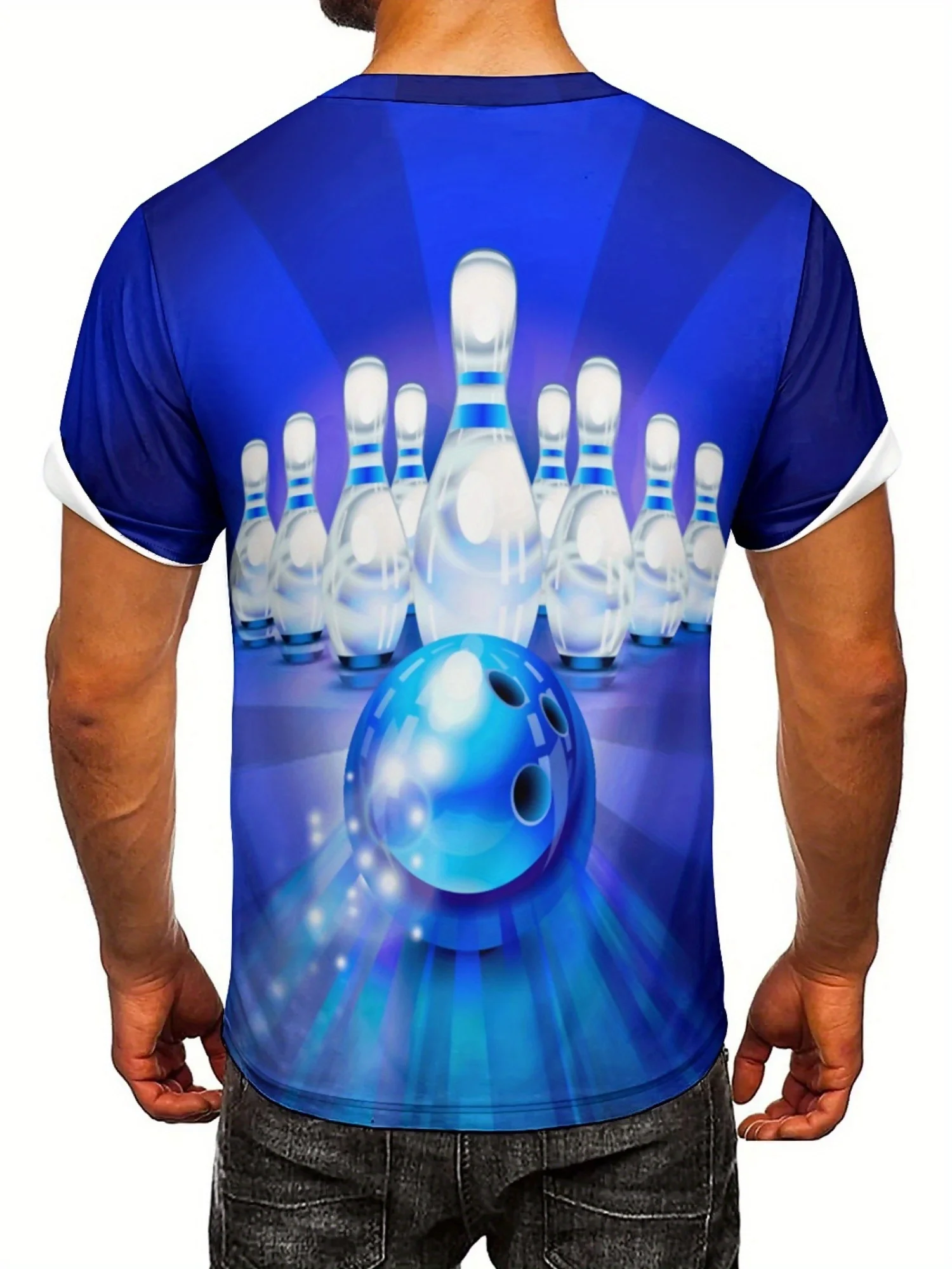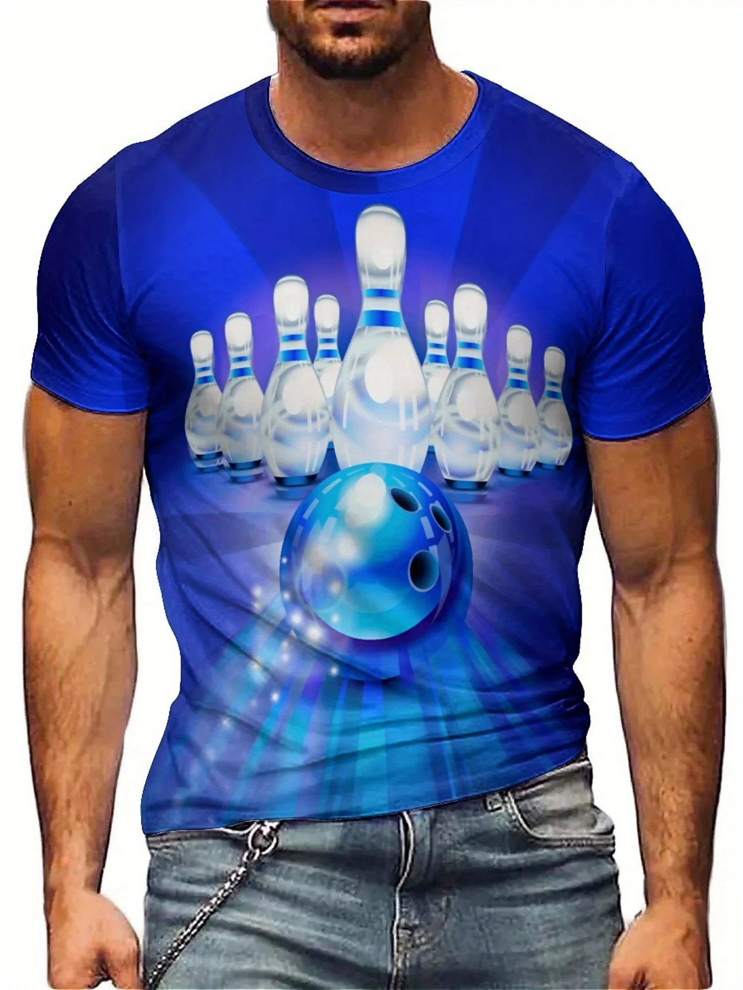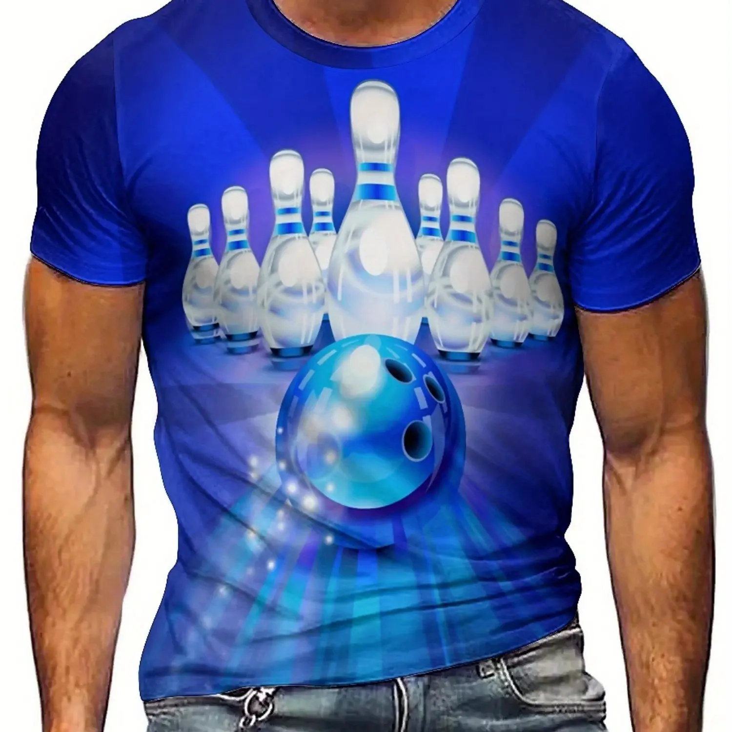 เสื้อยืดกราฟิกโบว์ลิ่งสีน้ำเงิน 3D ขนาดพลัสสำหรับผู้ชาย - เสื้อยืดคอกลมแขนสั้นสีสันสดใส สไตล์ลำลองและสปอร์ต - TopDealBox