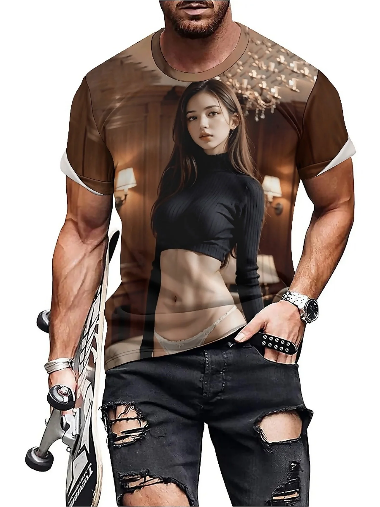 ♡ดูแบบย่อเสื้อยืดกราฟิกโมเดลบิกินี่เรขาคณิตพิมพ์ลาย 3 มิติสำหรับผู้ชาย - เสื้อยืดแขนสั้นลำลองและงานปาร์ตี้สีเทา, เสื้อยืดทรงพอดีตัวซักด้วยเครื่องซักผ้าได้155.33 THBมาแรง