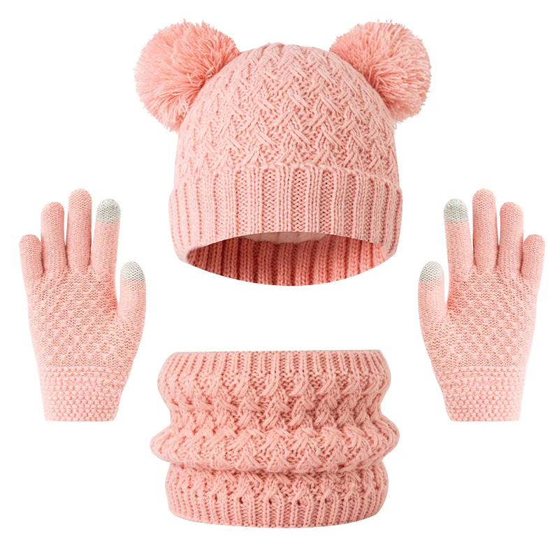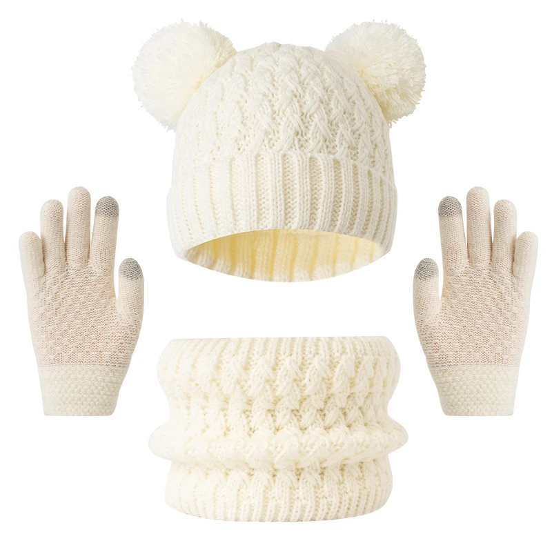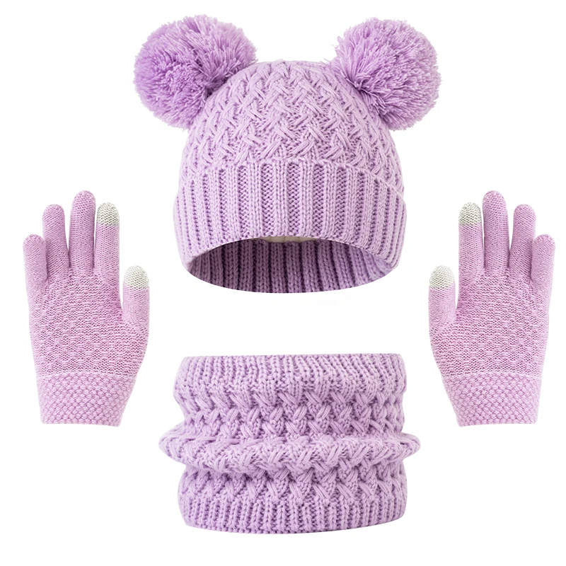 ♡ดูแบบย่อ3 ชิ้น สำหรับเด็กชายและเด็กหญิงอายุ 3 ถึง 12 ปี สวมหมวกถักแบบลูกบอลคู่พร้อมคอสีทึบและถุงมือในฤดูใบไม้ร่วงและฤดูหนาว142.73 THBมาแรง