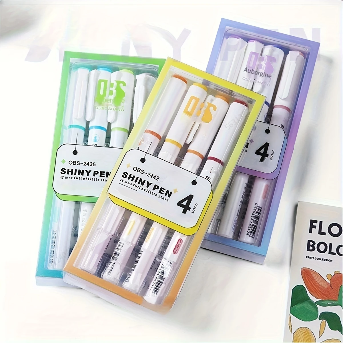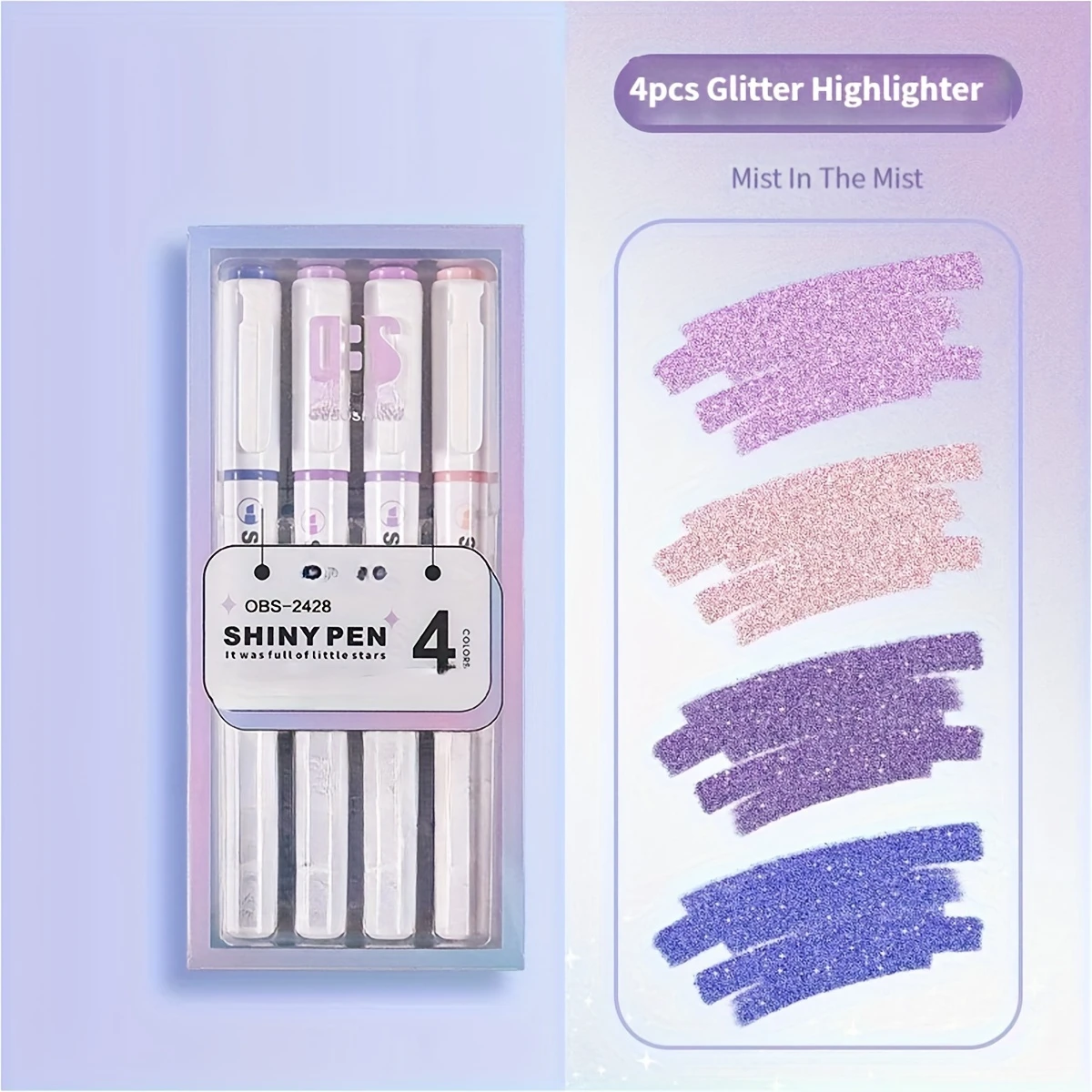 ชุดปากกาเน้นข้อความกลิตเตอร์ 4 แพ็ค สีพาสเทลพร้อมชิมเมอร์ เหมาะสําหรับวารสาร การเรียงลําดับเส้นเล็ก บันทึก และคอลเลกชันเครื่องเขียน