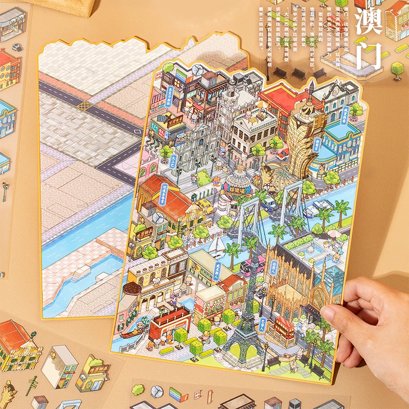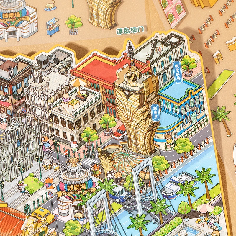 ♡ดูแบบย่อสติกเกอร์เมืองมุมใหญ่ 2 แพ็ค - ไดโอรามาขนาดใหญ่สำหรับสมุดบันทึก, วัสดุตกแต่งฉากสนุกๆ, เครื่องเขียนธีมเมืองสร้างสรรค์สำหรับงาน DIY98.94 THBมาแรง
