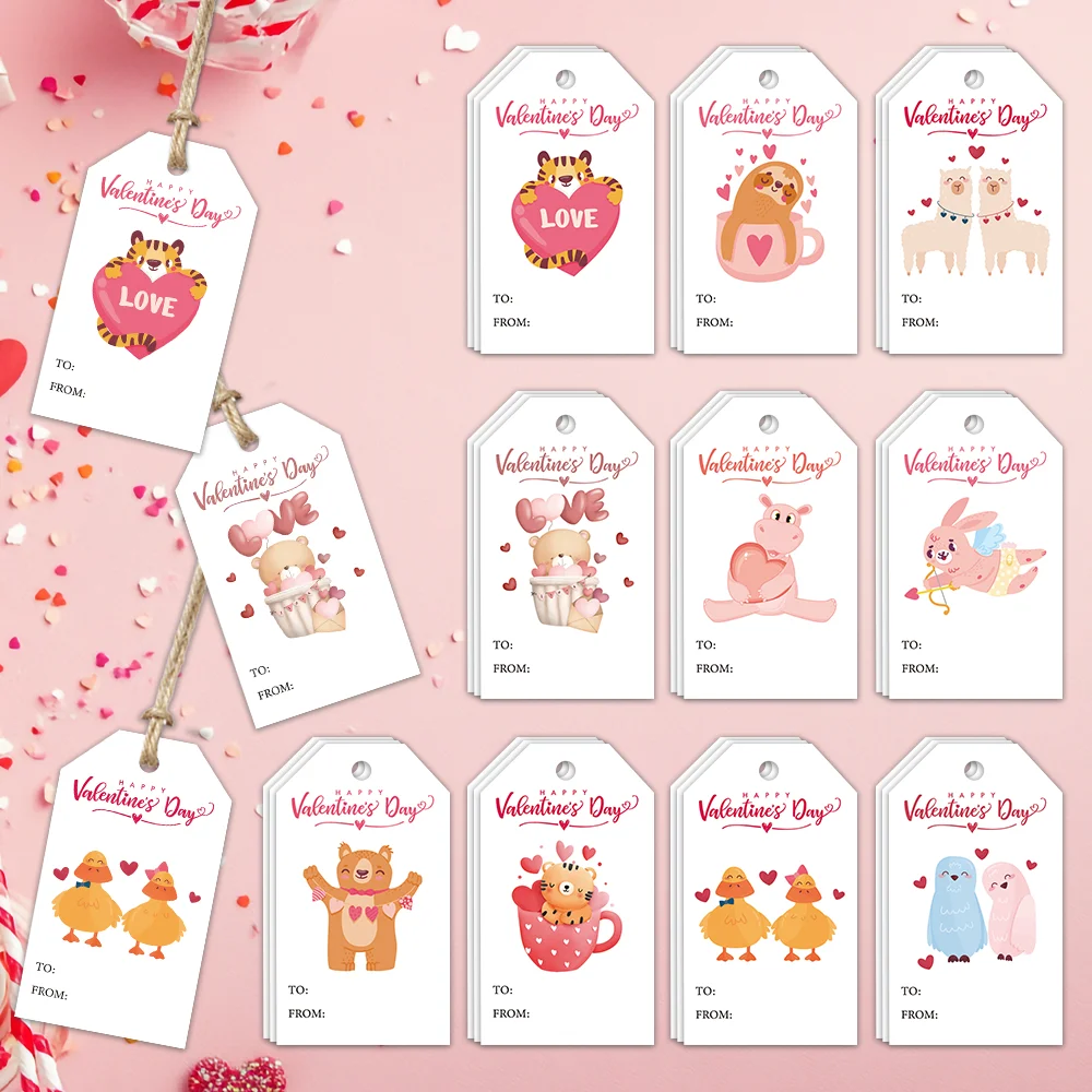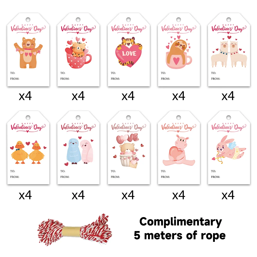 ป้ายห่อของขวัญธีมสัตว์วาเลนไทน์ 40 ชิ้น, การ์ดภาพประกอบวันหยุด, ป้ายบรรจุภัณฑ์สำหรับเบเกอรี่, ของตกแต่งโต๊ะขนมหวาน, งานฝีมือ DIY - TopDealBox