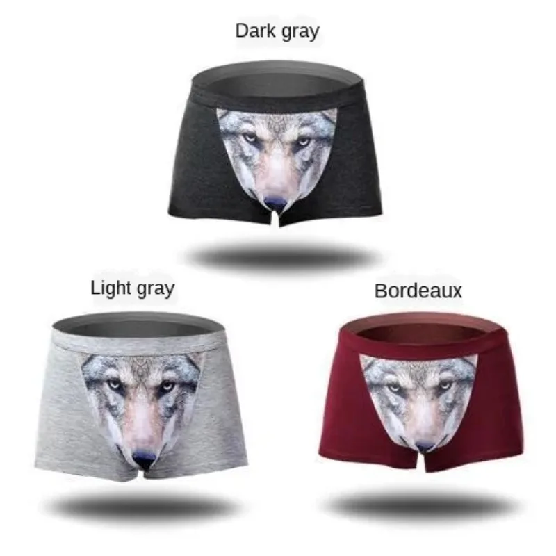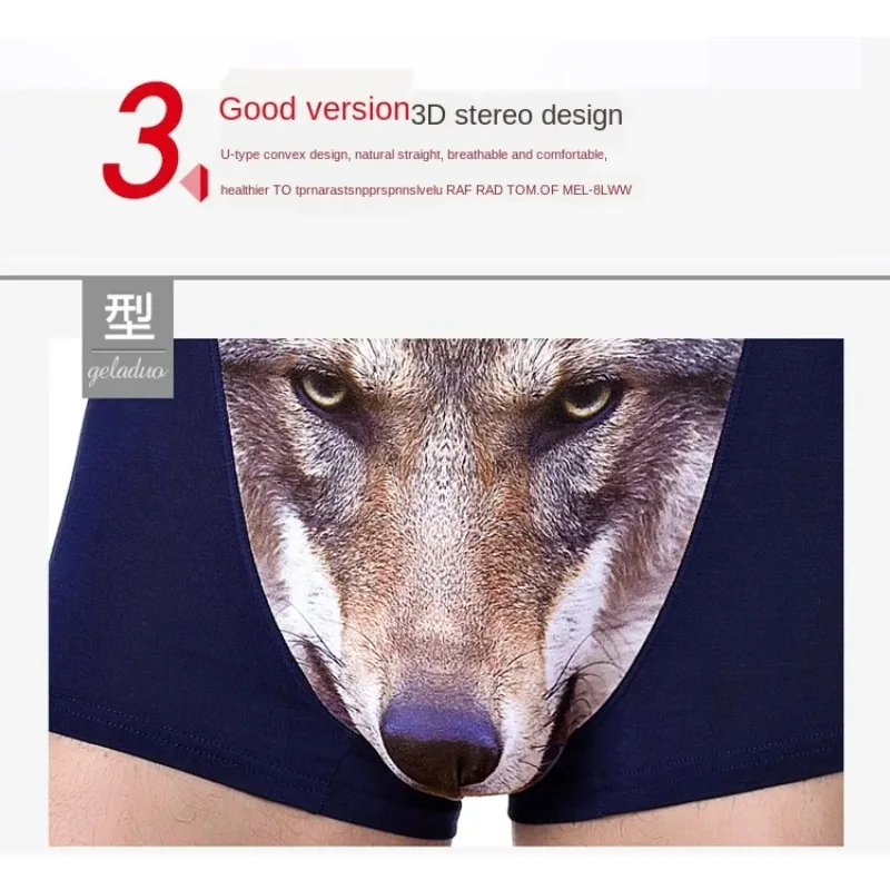 กางเกงในชายไซส์ใหญ่ 4XL ลายหมาป่า ผ้าโมดอล ทรงนูน ใส่สบาย นุ่ม 3 ชิ้น - TopDealBox