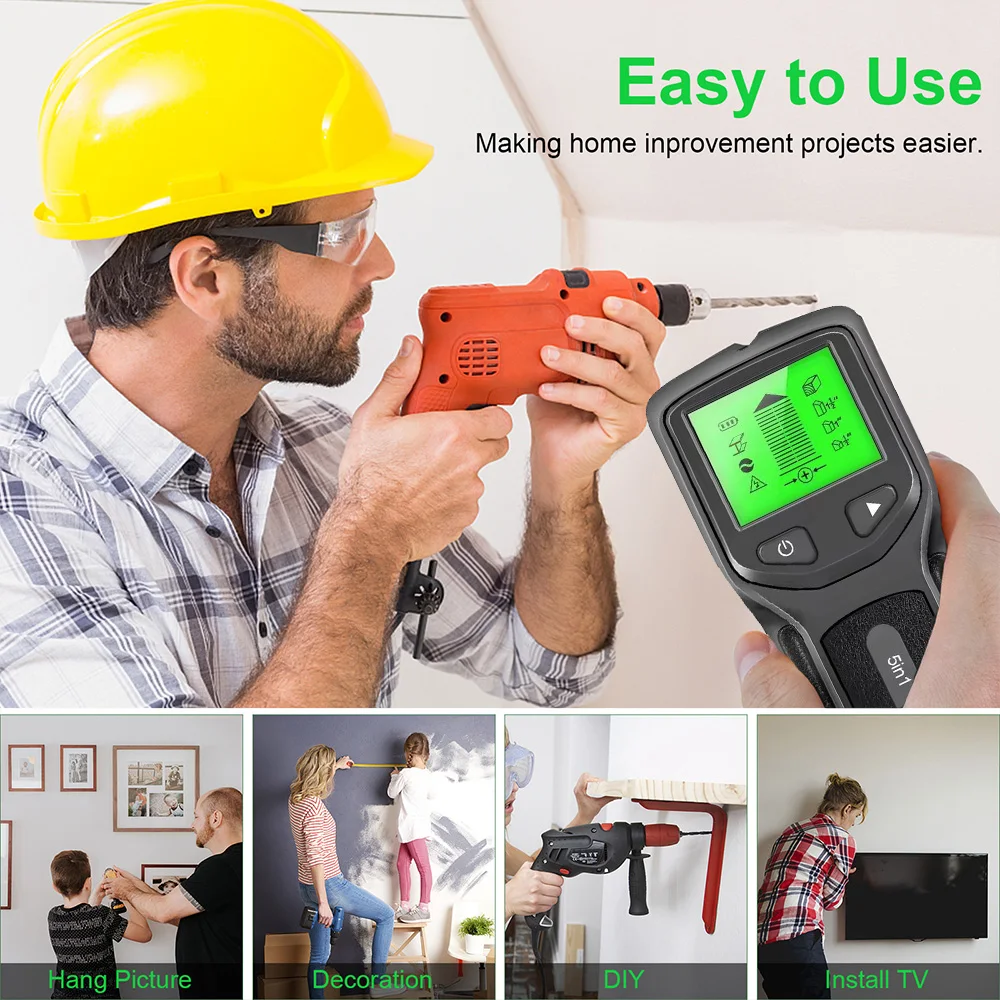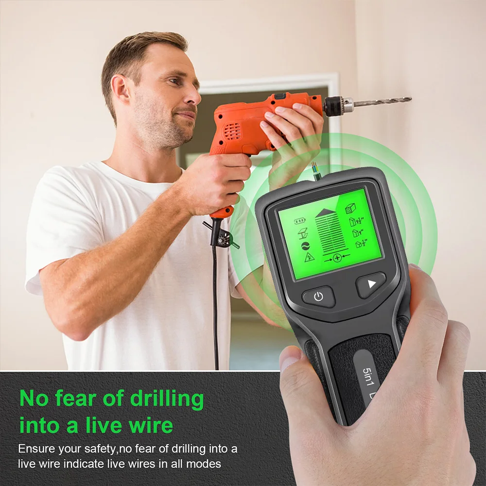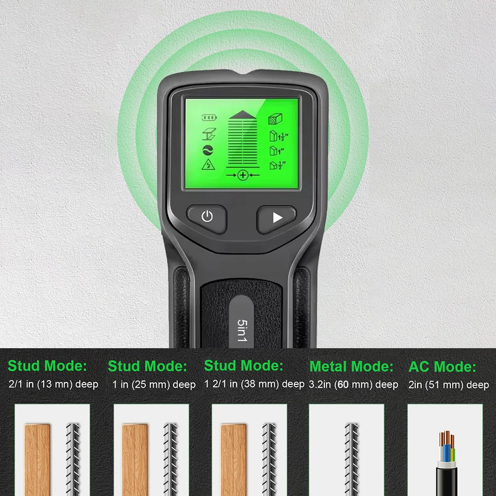เครื่องตรวจจับผนังมือถืออเนกประสงค์ 5 โหมดจอแสดงผล LCD เครื่องตรวจจับสตั๊ด, ตรวจจับโลหะ/ลวด AC/ไม้/สายโดยการสแกนผนัง - TopDealBox