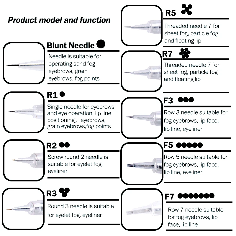 ♡ดูแบบย่อ20pcs Bayonet Micro เข็มเข็ม R1/R2/R3/R5/R7/F3/F5 /F7 สําหรับ Micropigmentation Tattoo แต่งหน้า Eyebrow Lip Derma เครื่องมือ135.32 THBมาแรง