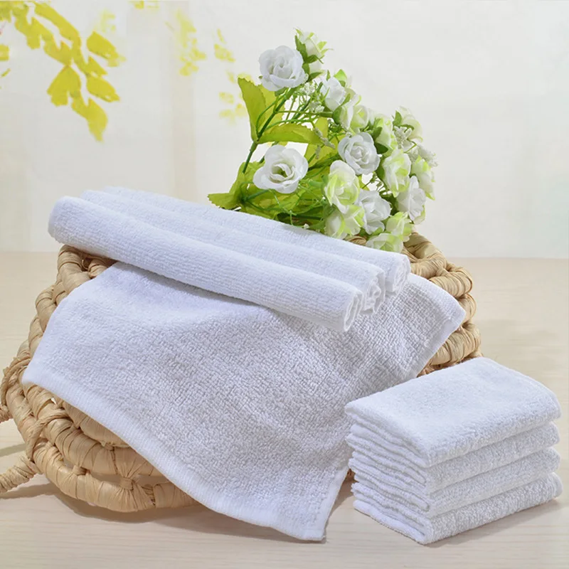 5ชิ้นผ้าฝ้ายแท้สีขาวผ้าขนหนูขนาดเล็กโรงแรมใบหน้าผ้าฝ้ายKTVร้านอาหารอนุบาลมือ30*30เซนติเมตร - TopDealBox