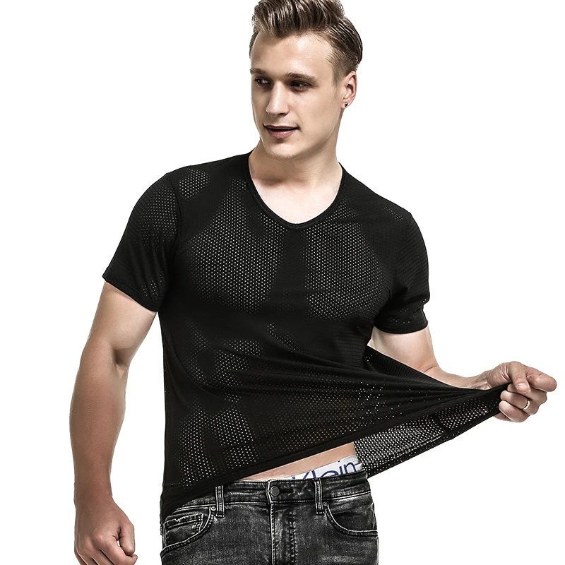 เสื้อยืดตาข่ายไหม 5PCSIce สําหรับผู้ชาย ตาข่ายระบายอากาศด้วยผ้าเจาะรู กีฬาและฟิตเนส แห้งเร็ว คอวีหลวม อินเทรนด์ ม - TopDealBox