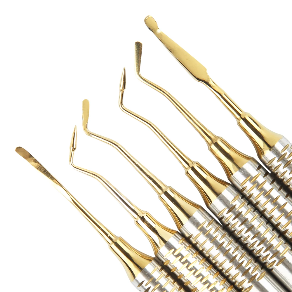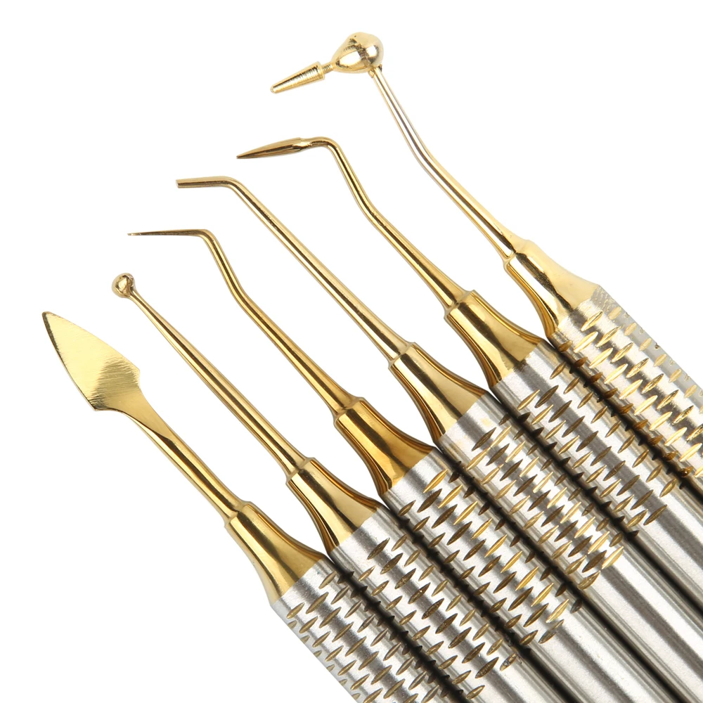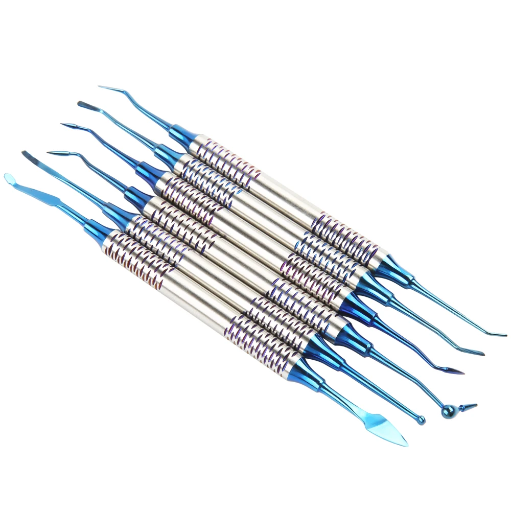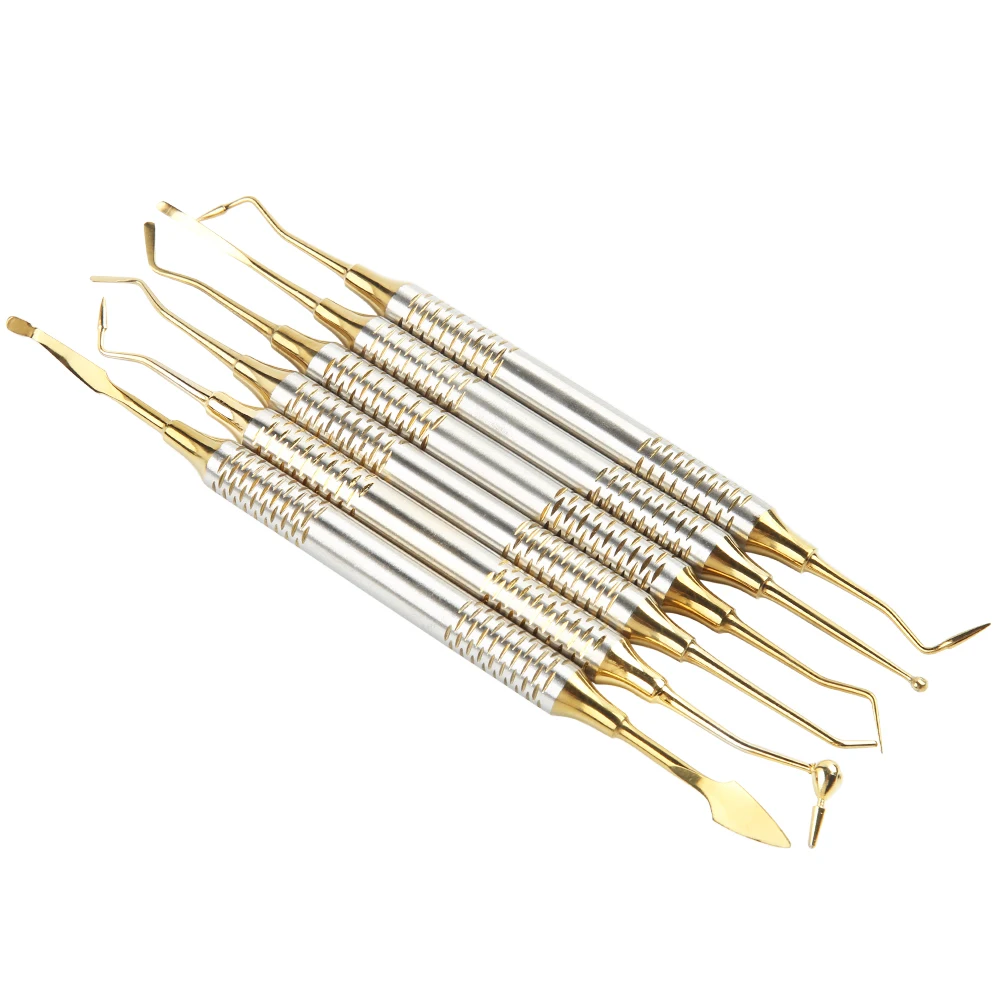 ชุดไม้พายเติมเรซินทันตกรรม6ชิ้นชุดหัวเรซินชุบไทเทเนียมชุดเติมด้ามจับหนาเครื่องมือทันตกรรม - TopDealBox