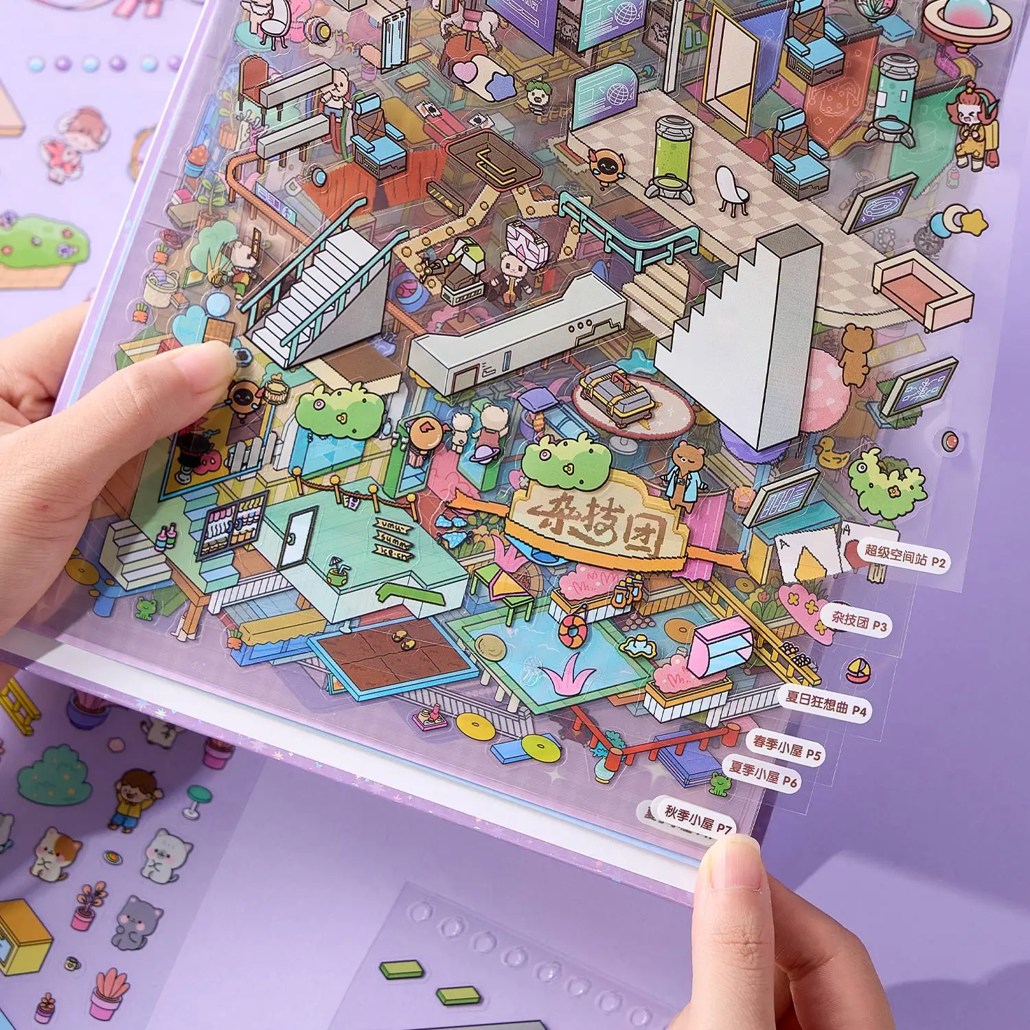 สมุดสติกเกอร์ฉากจิ๋วเมโลดี้ทาวน์ประกอบด้วยฉากที่แตกต่างกัน 8 ฉากและวัสดุสติกเกอร์ 14 แบบ, บ้านการ์ตูน 3 มิติ DIY ตกแต่งฉาก, สติกเกอร์กราฟฟิตี้, อุปกรณ์สมุดภาพ - TopDealBox