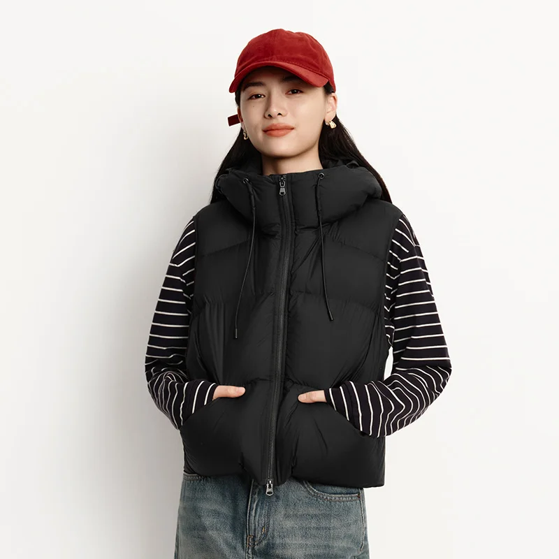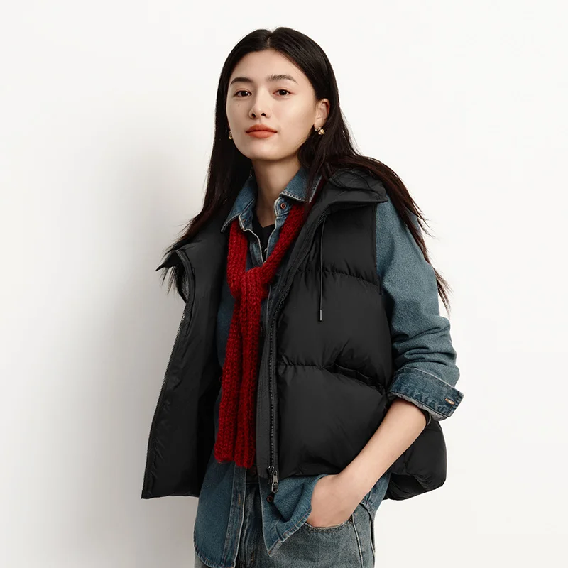 เสื้อกั๊กขนเป็ดสำหรับผู้หญิง ฤดูหนาว ขนเป็ดแท้ 90% กันน้ำ มีฮู้ด สีพื้น รุ่นใหม่ปี 2025 สไตล์มินิมอล ใส่เป็นเสื้อคลุมด้านนอก - TopDealBox