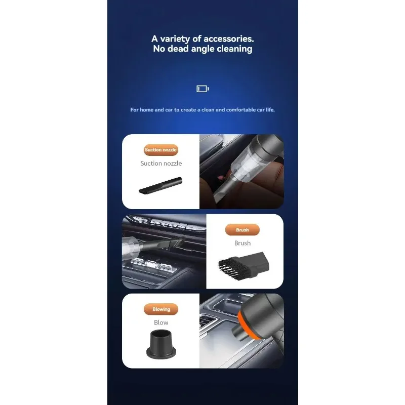 เครื่องดูดฝุ่นไร้สายแบบพกพาสำหรับรถยนต์ พร้อมแรงดูดสูง เครื่องดูดฝุ่นมือถือขนาดเล็ก ใช้เป็นเครื่องเป่าฝุ่นสำหรับทำความสะอาดบ้าน - TopDealBox